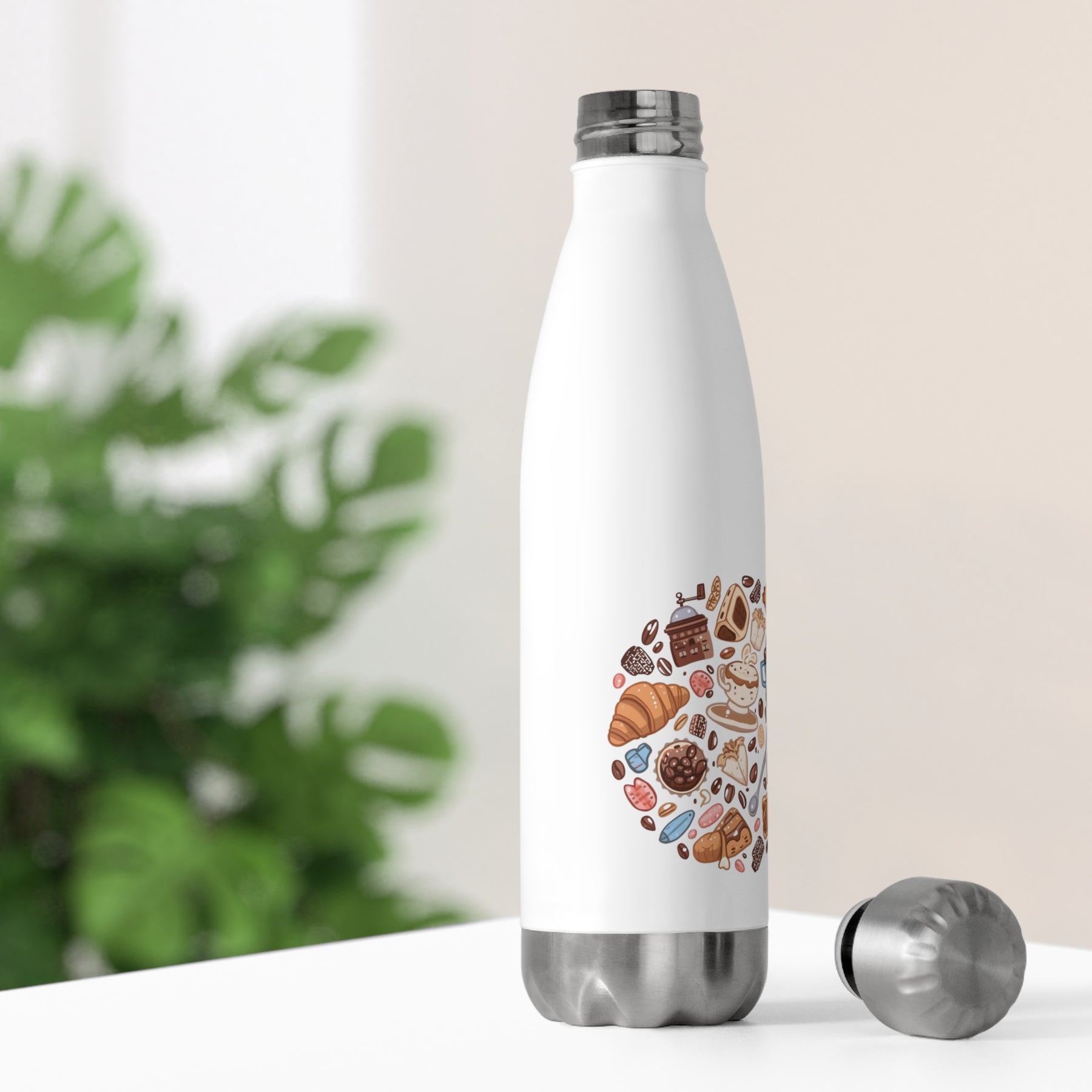 Whimsical Cafe Cartoon 20oz Premium Insulated Bottle – Coffee & Pastry Art