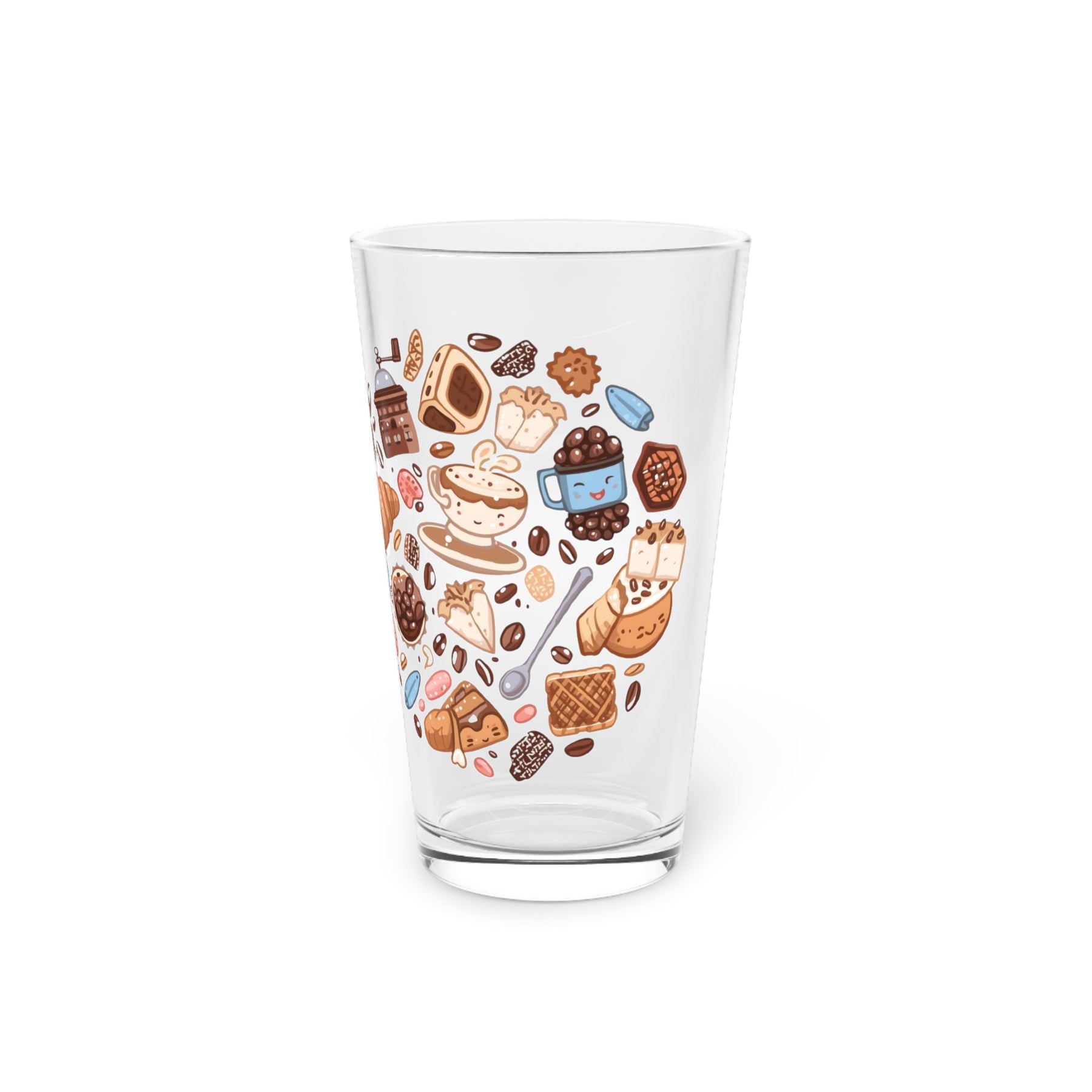 Custom 16oz Pint Glass – Playful Café Cartoon Design, Personalized Gift