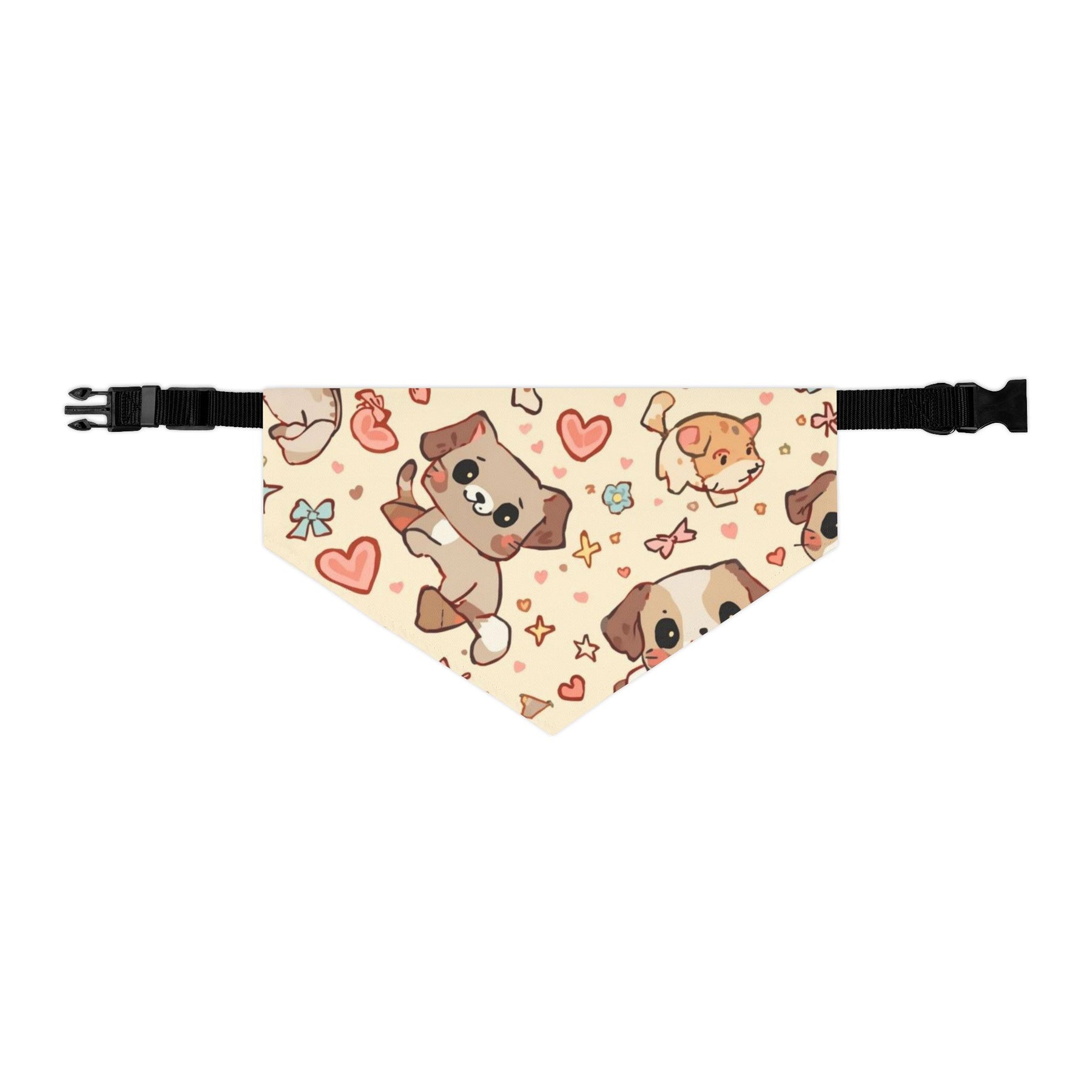 Crafted from 100% polyester duck fabric, this bandana is soft, lightweight, and breathable, ensuring all-day comfort for your pet. The fade-resistant, high-quality material maintains its vivid look after countless adventures and washes. Its tough plastic buckle and adjustable black collar guarantee a secure fit that stays put—even during energetic play.