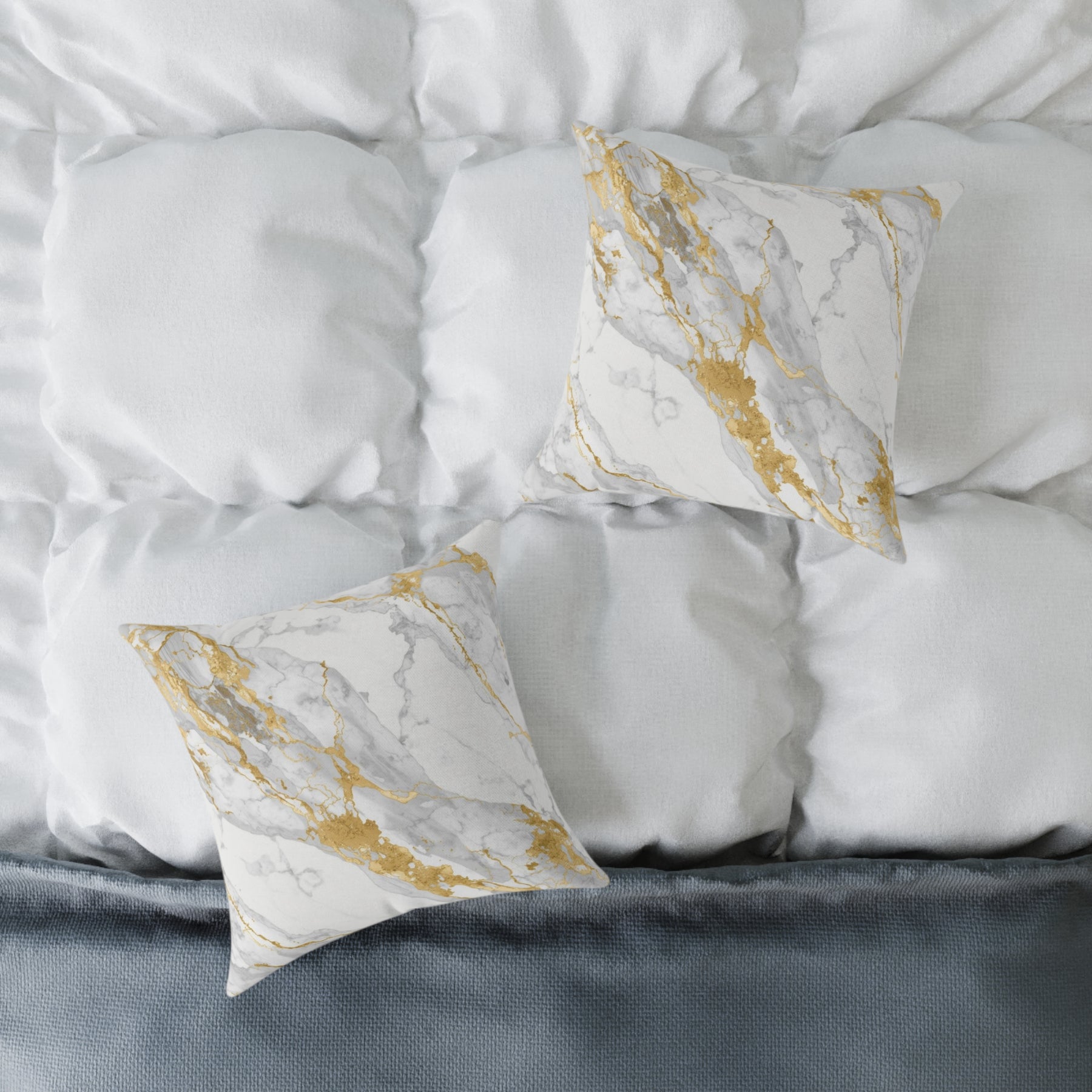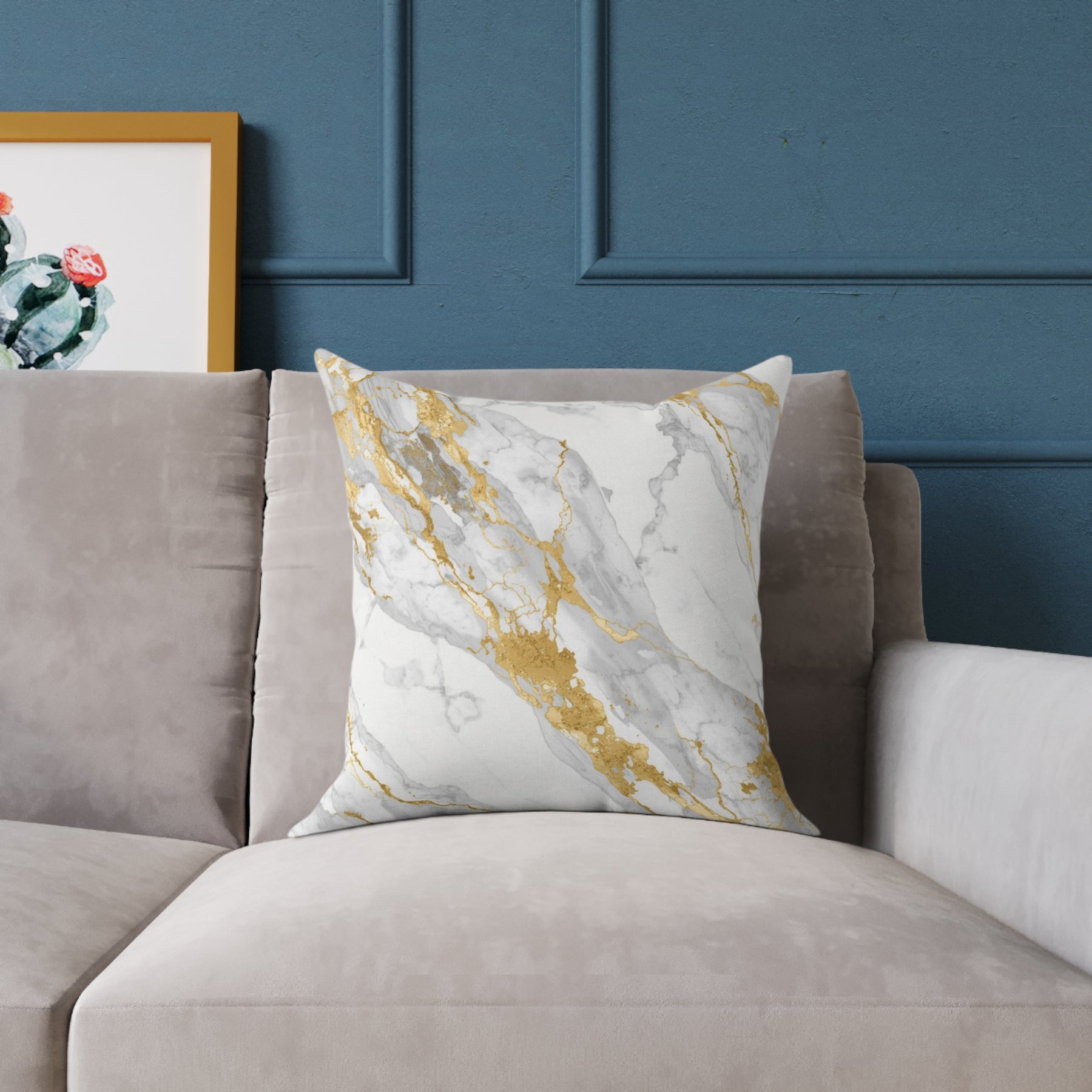 Chic Marble Gold Touch Square Poly Canvas Pillow – Customizable & Modern