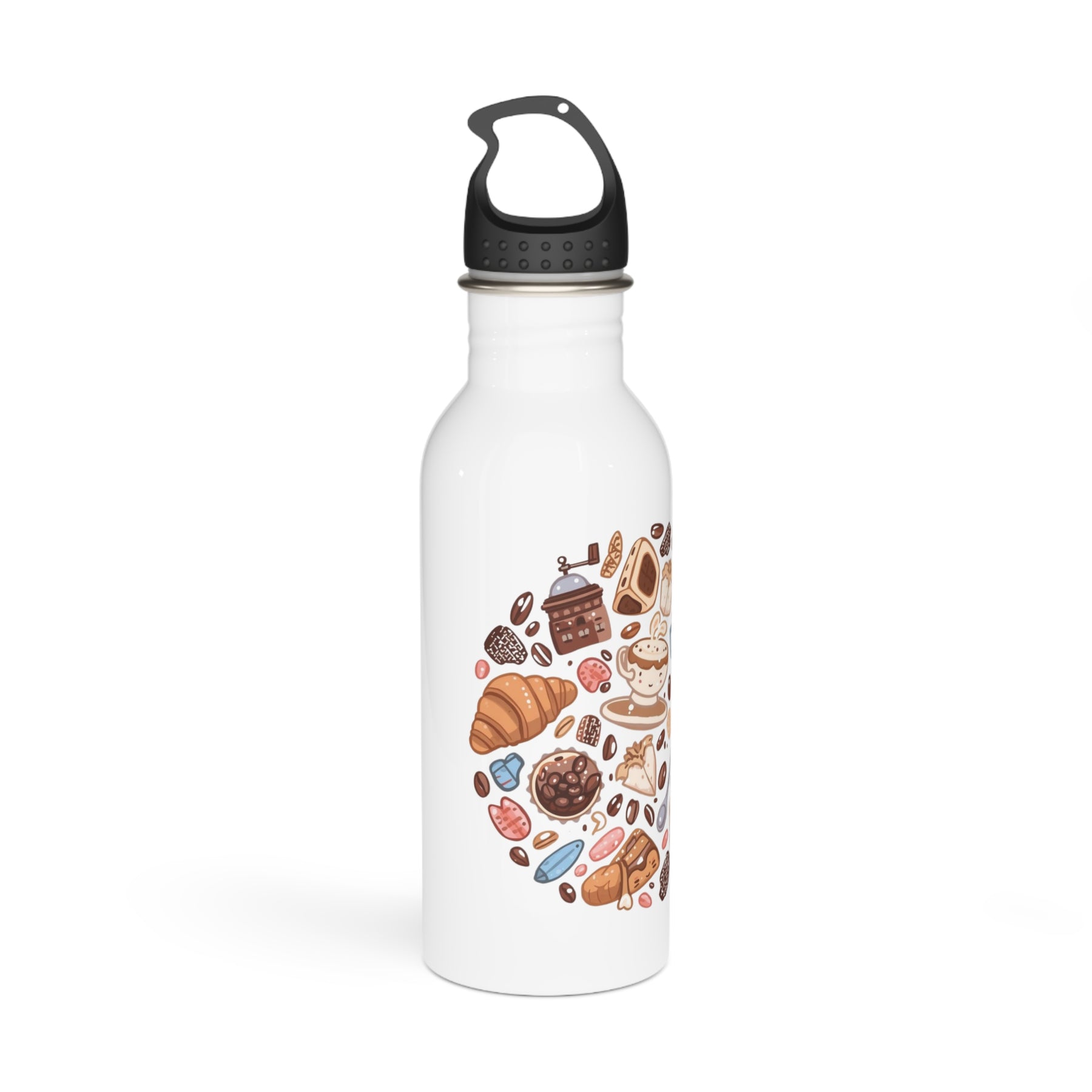Whimsical Café Cartoon 20oz Stainless Steel Water Bottle – Cute & Insulated
