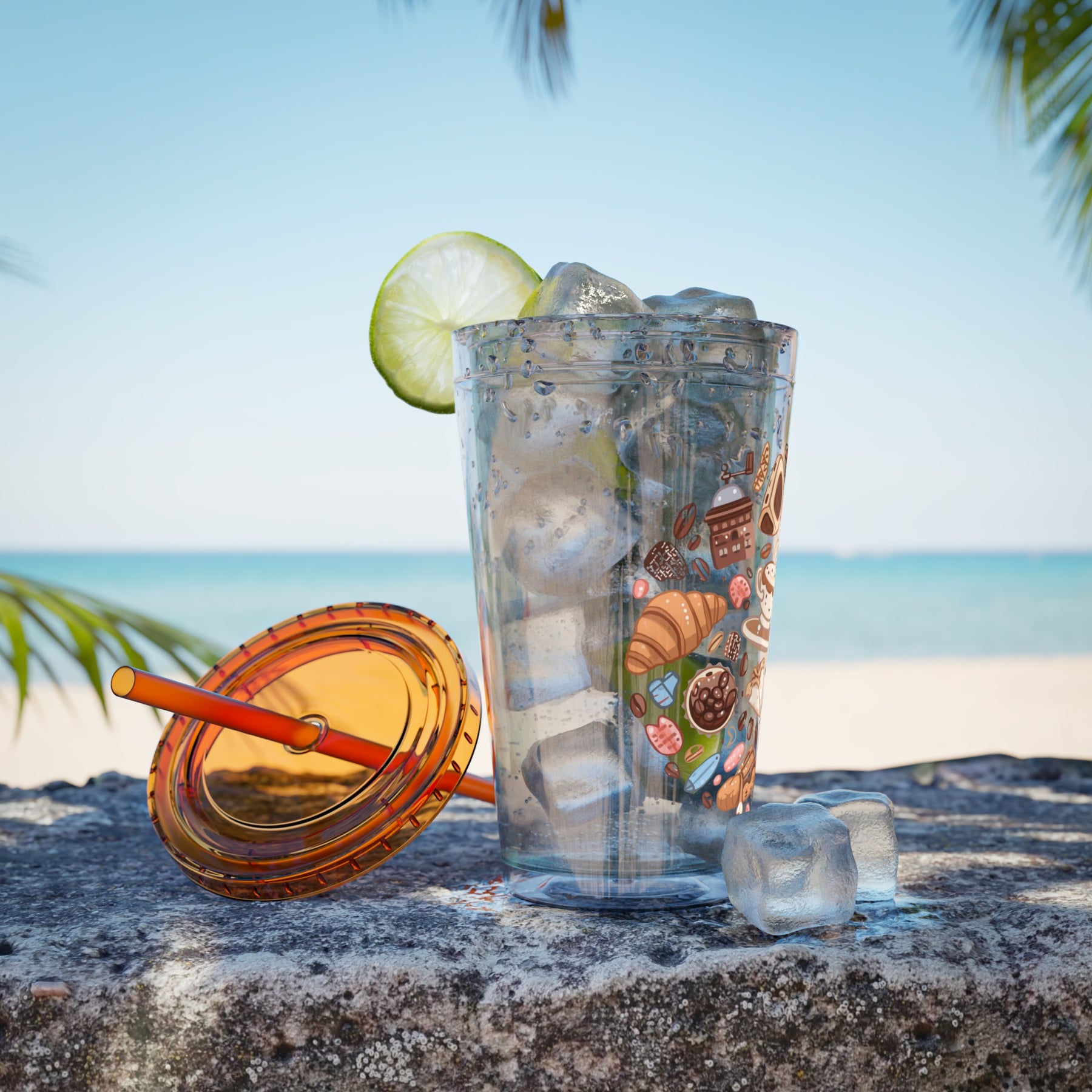 Sunsplash 16oz Tumbler – Cute Café Cartoon Coffee & Dessert, Straw Included