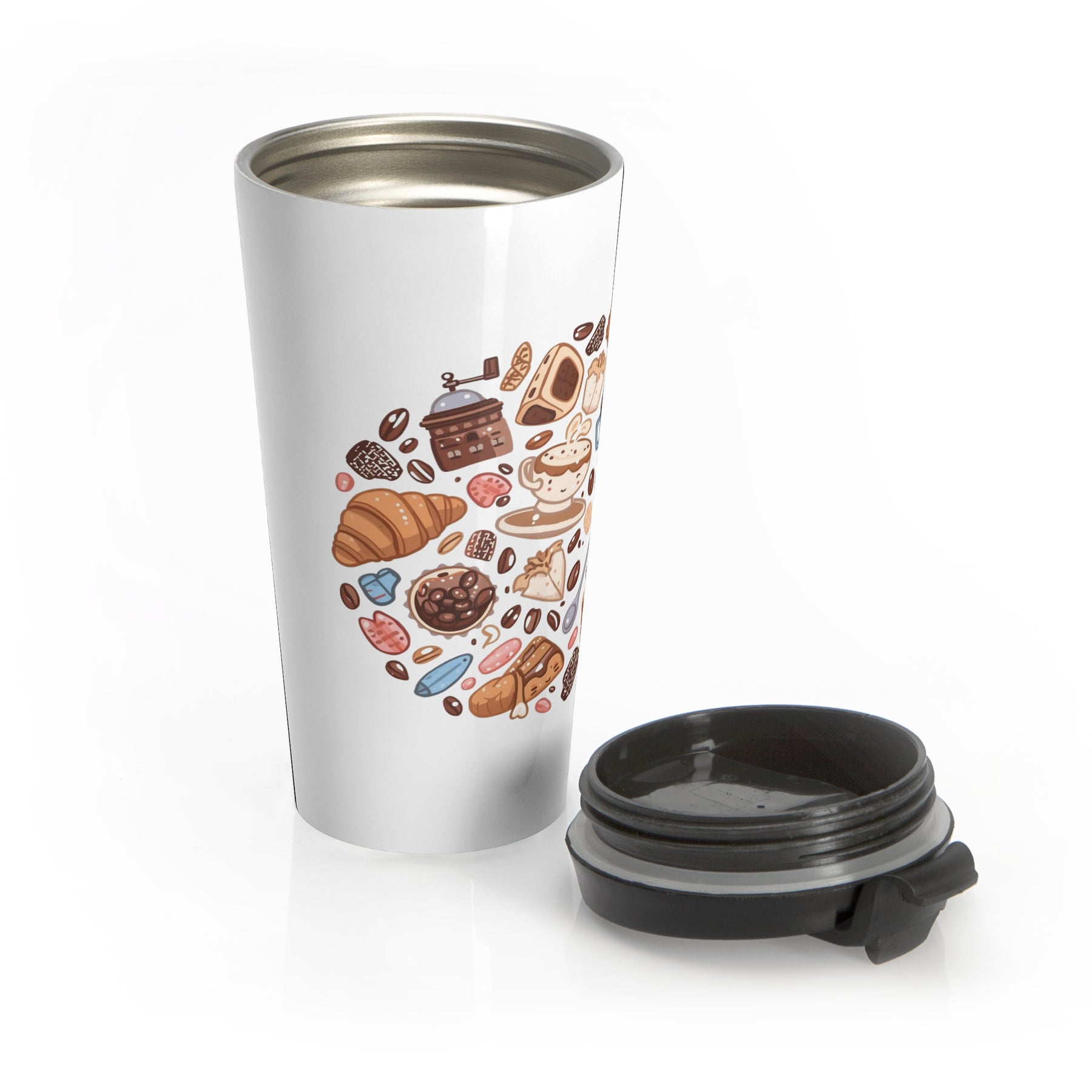 Whimsical Café Stainless Steel Travel Mug – Insulated, Spill-Proof, 15oz