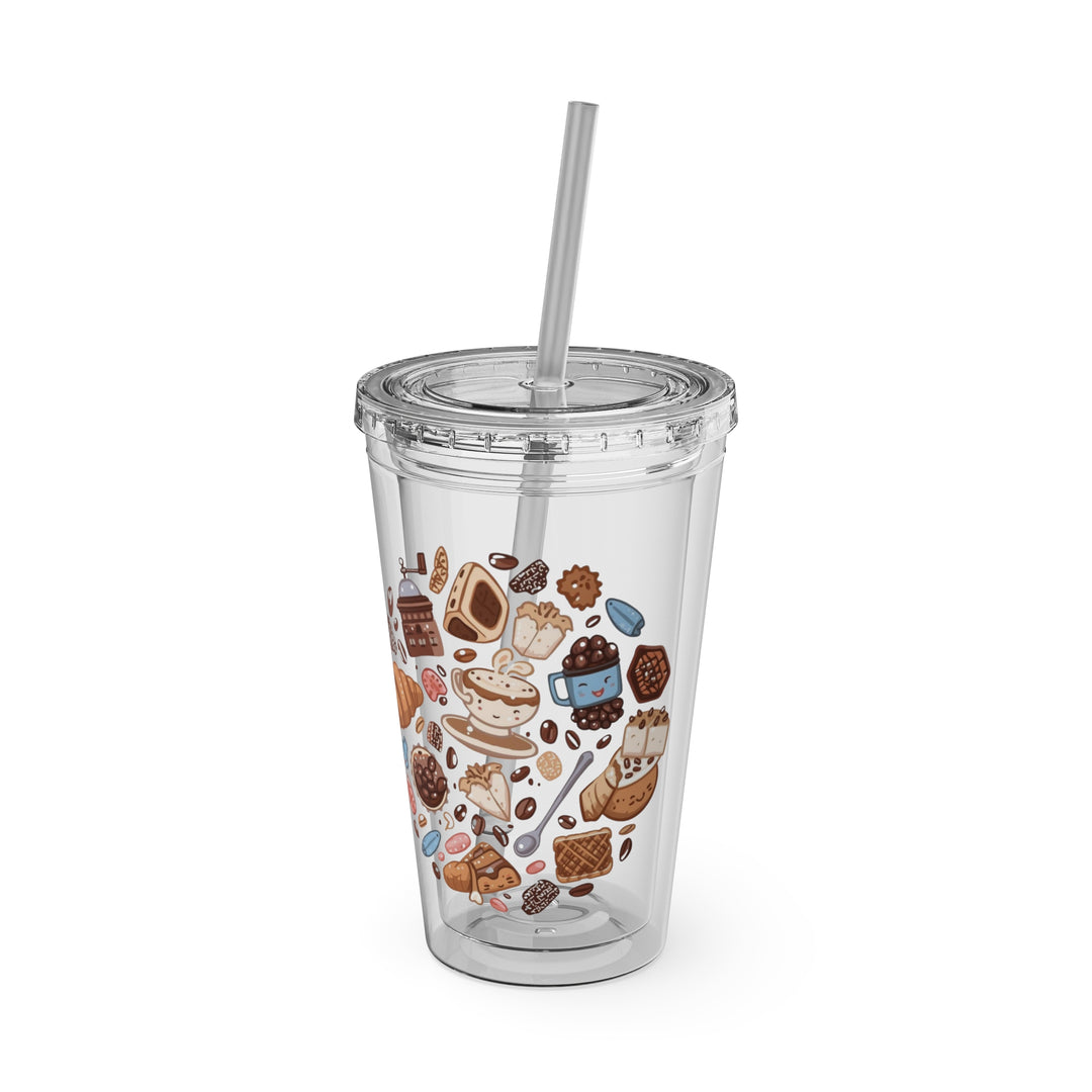 Sunsplash 16oz Tumbler – Cute Café Cartoon Coffee & Dessert, Straw Included