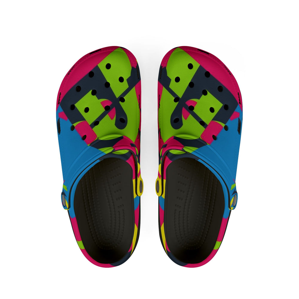 Vibrant Abstract EVA Foam Rubber Clogs – Neon Geometric, Ultra Comfy, Trendy