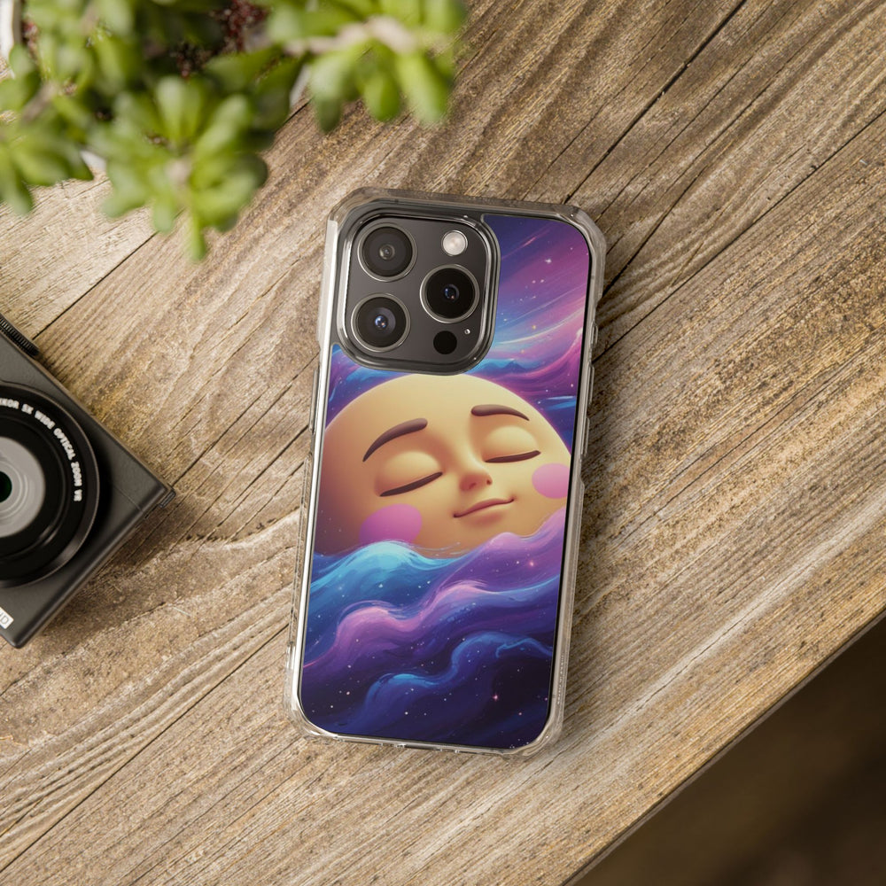 MagSafe Magnetic Clear Impact Case – Dreamy Galaxy Moon Design for iPhone