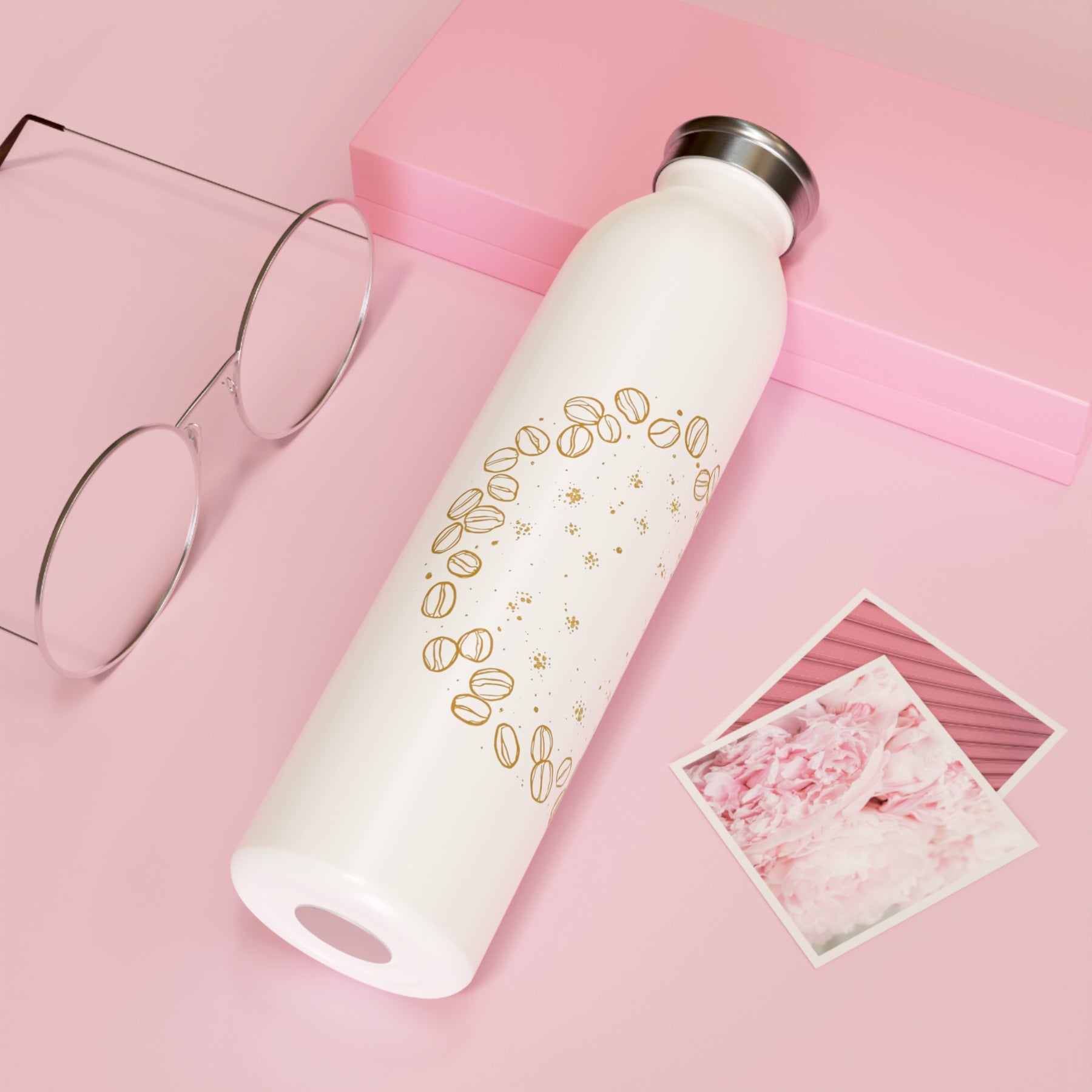 Slim Personalized Water Bottle – Coffee Bean Chic, 20oz, Eco-Friendly Flask