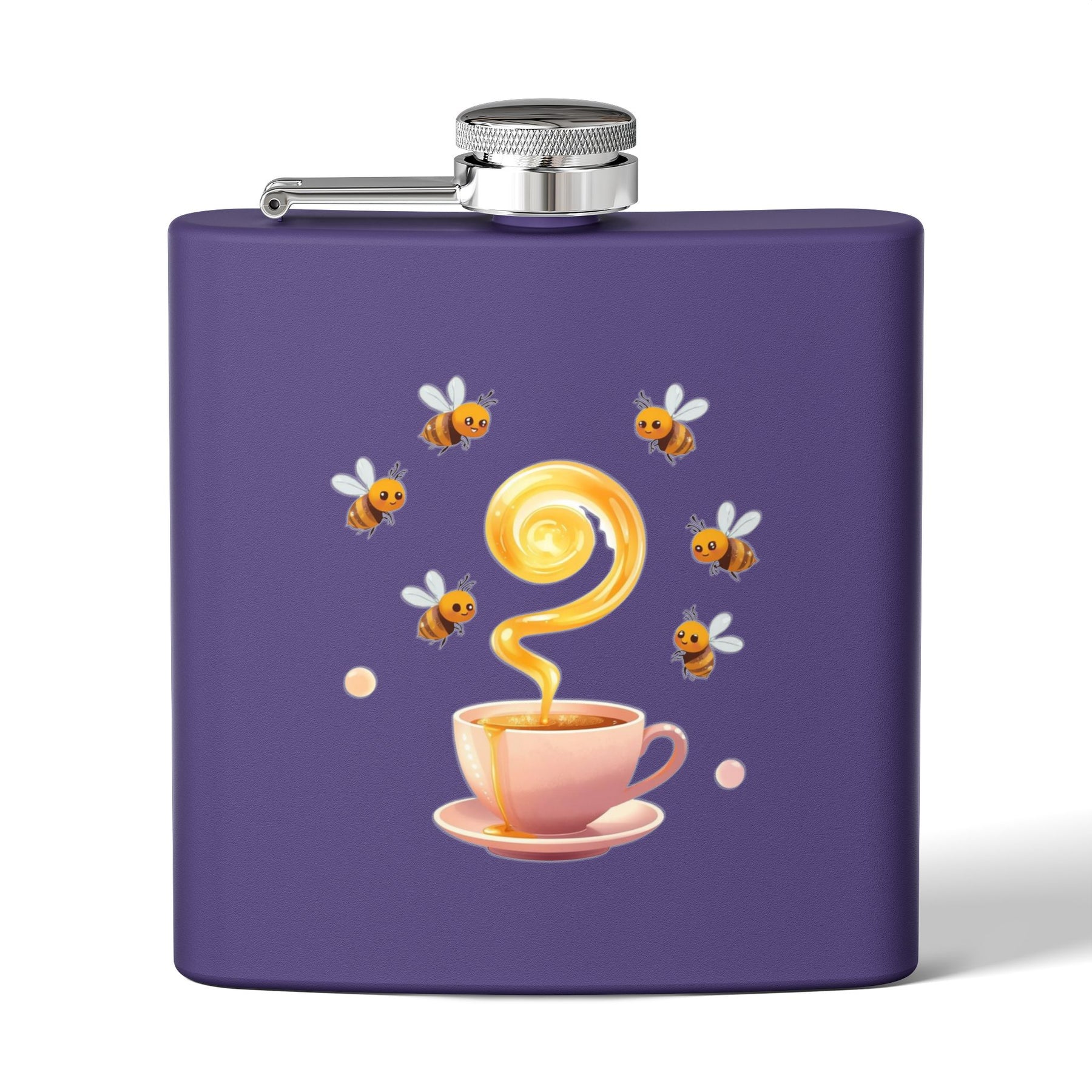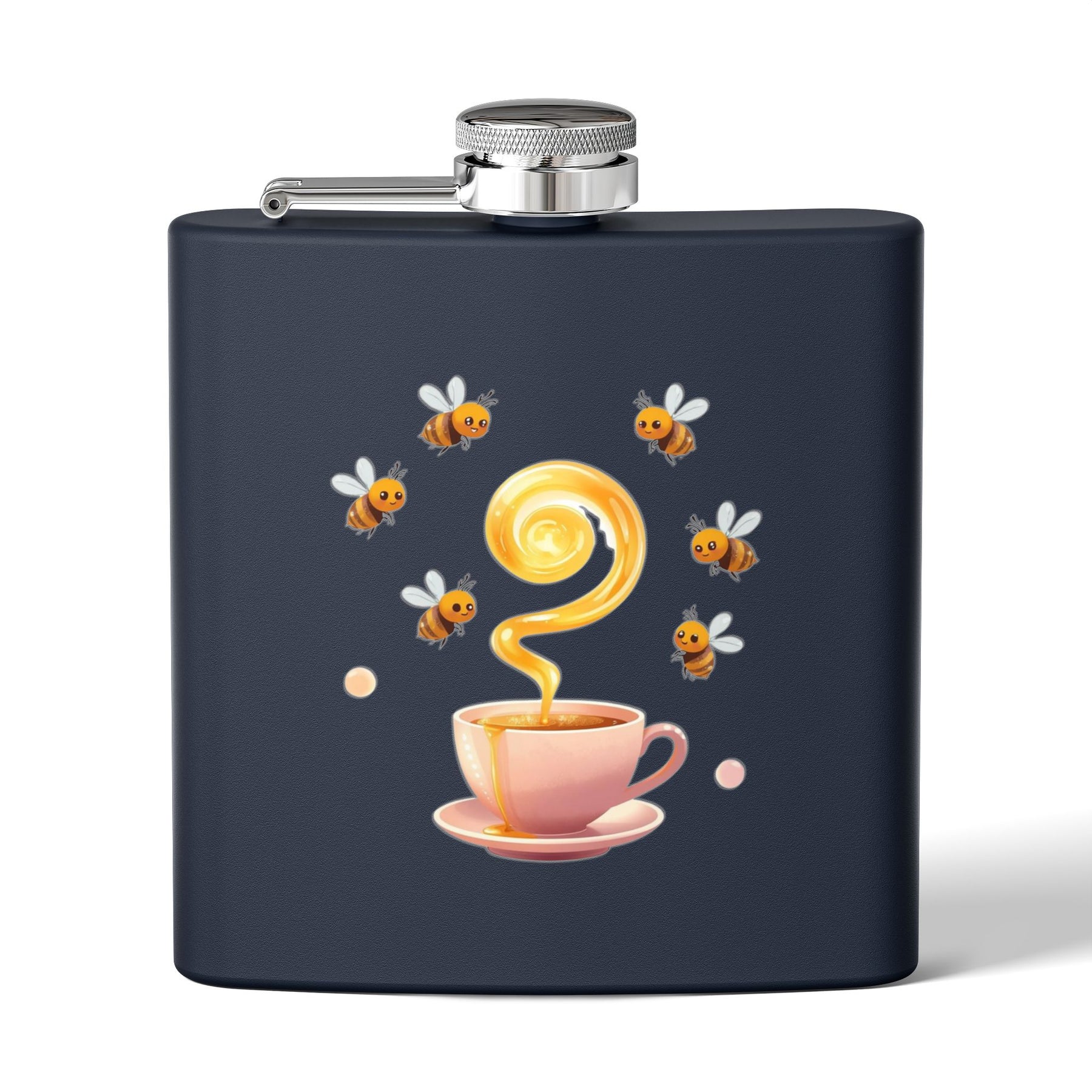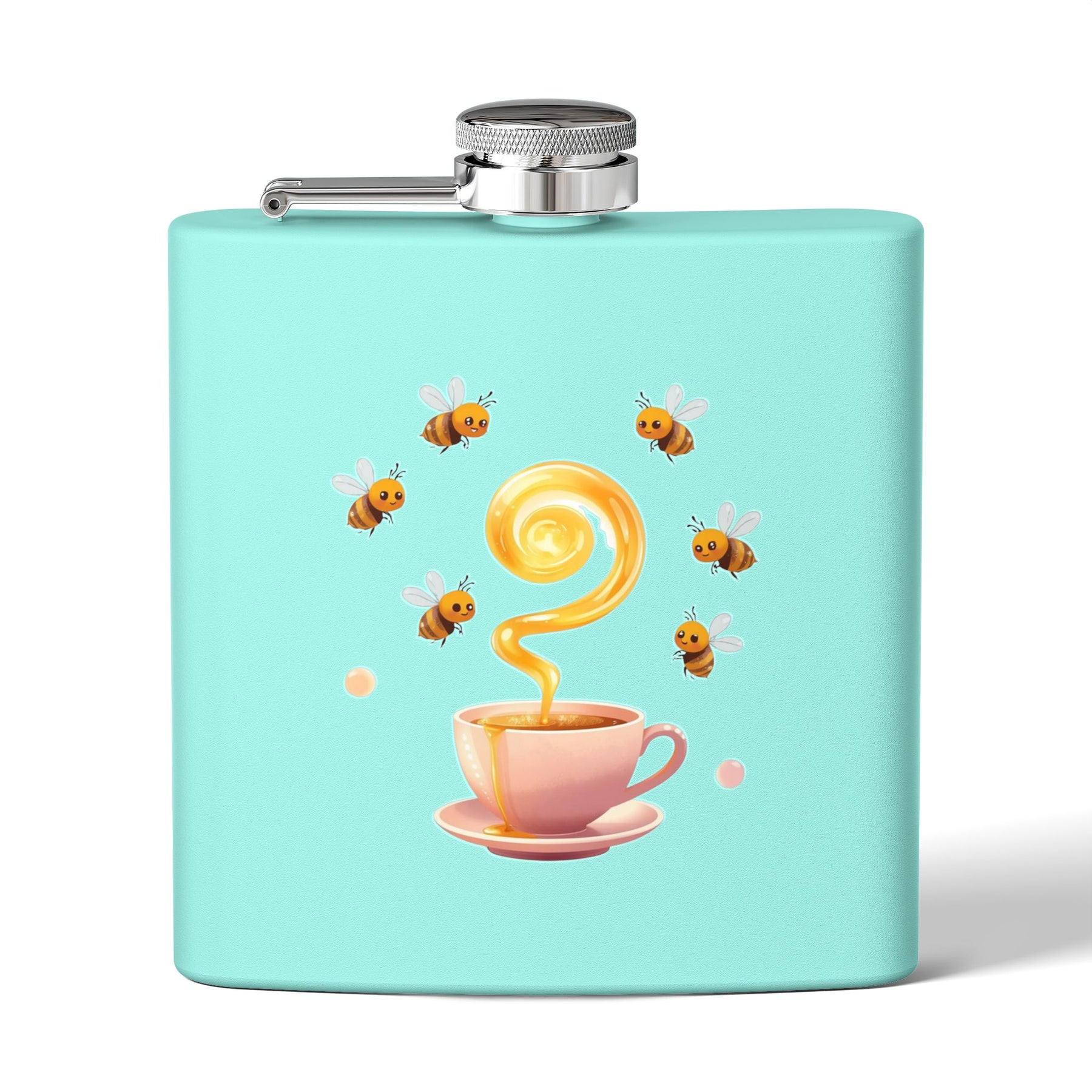 Whimsical Honey Bee 6oz Stainless Steel Flask – Cute Pastel Teacup Gift