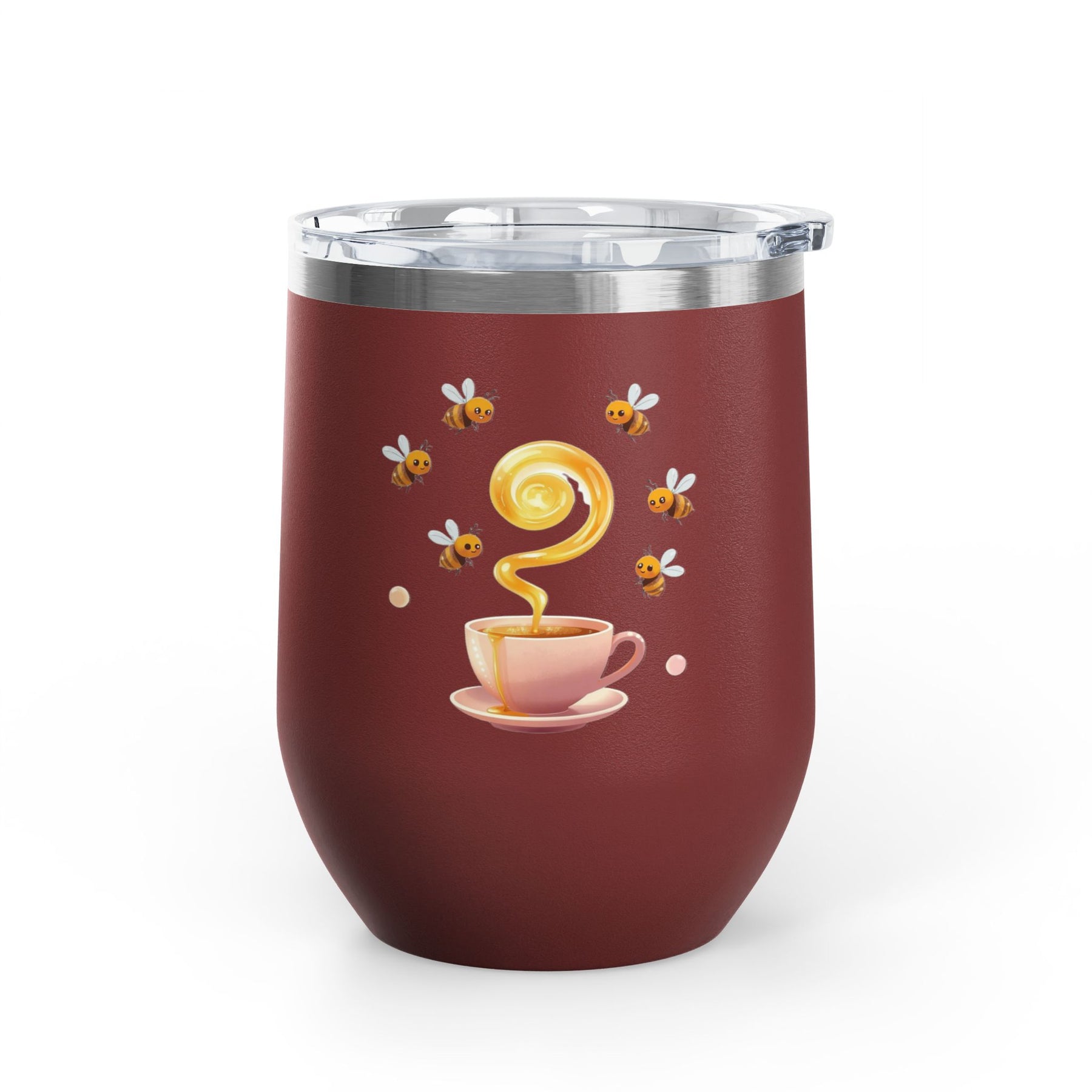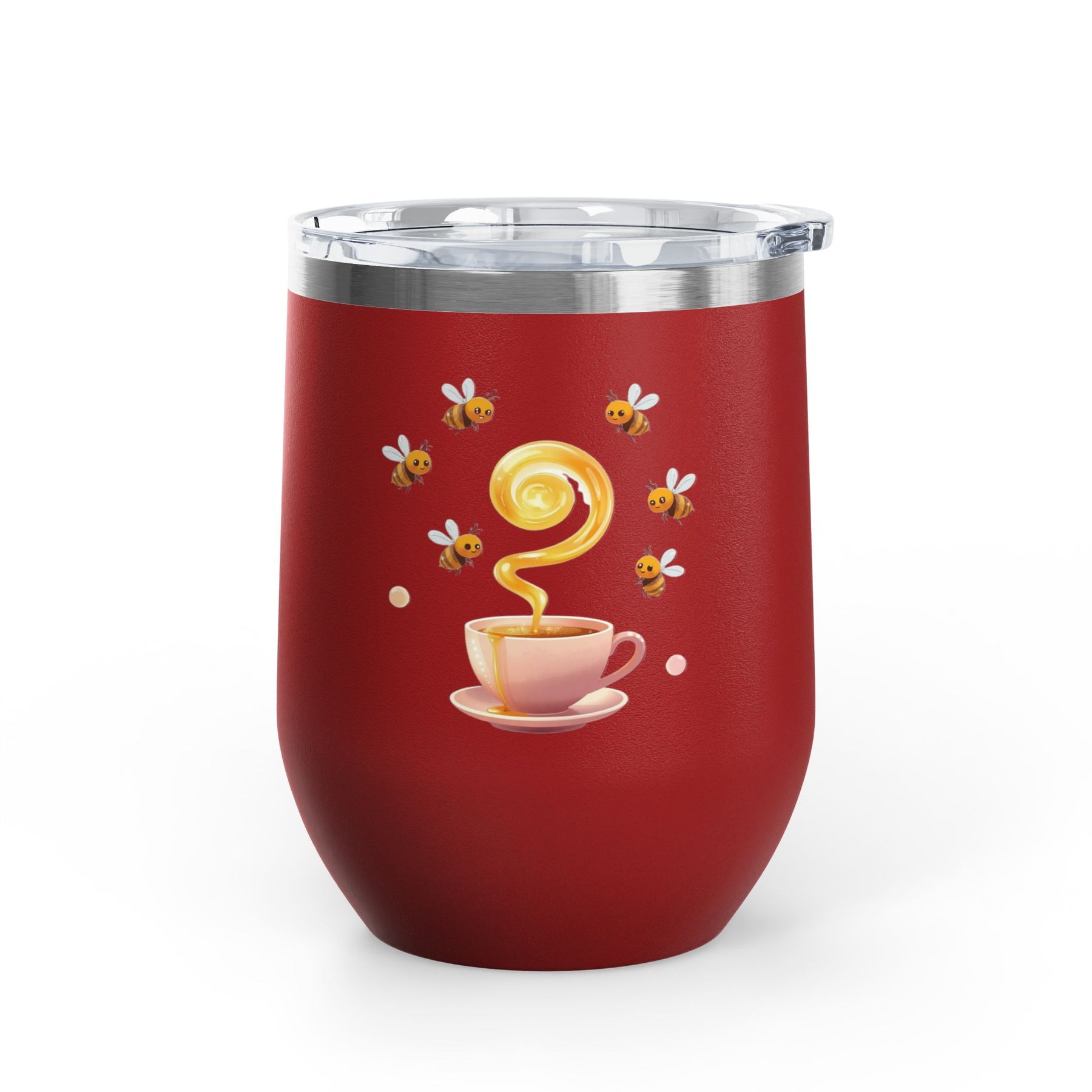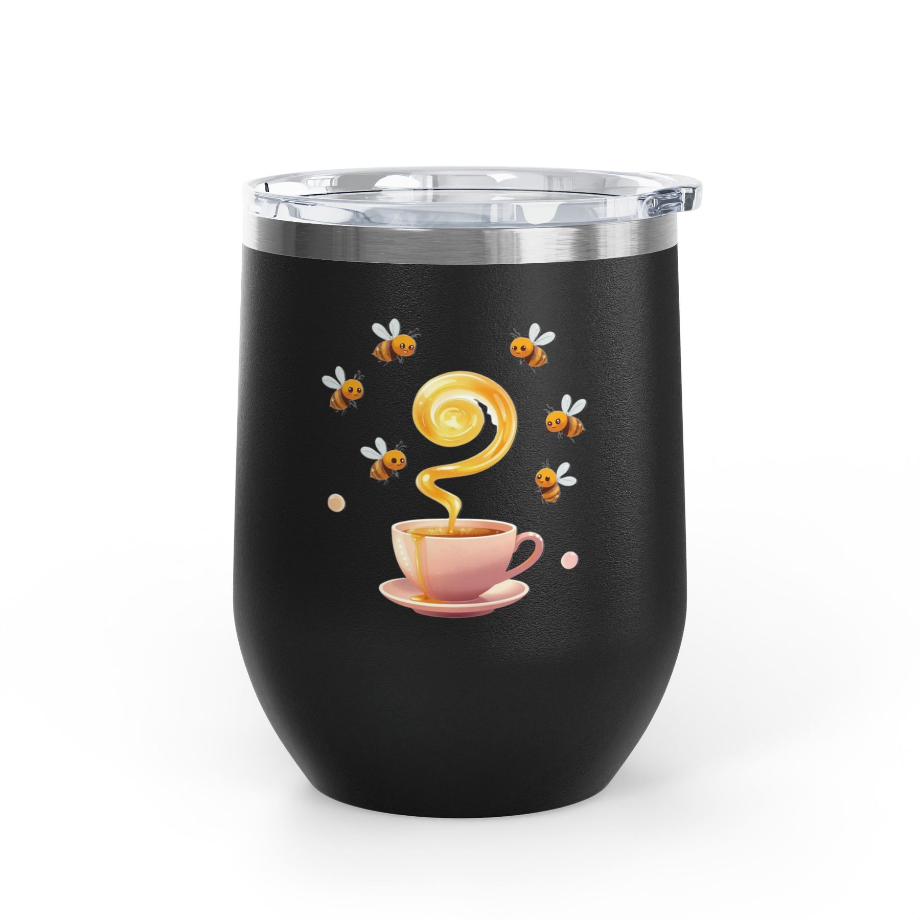 Bee Happy 12oz Stainless Steel Wine Tumbler – Cute Honeybee Pastel Design