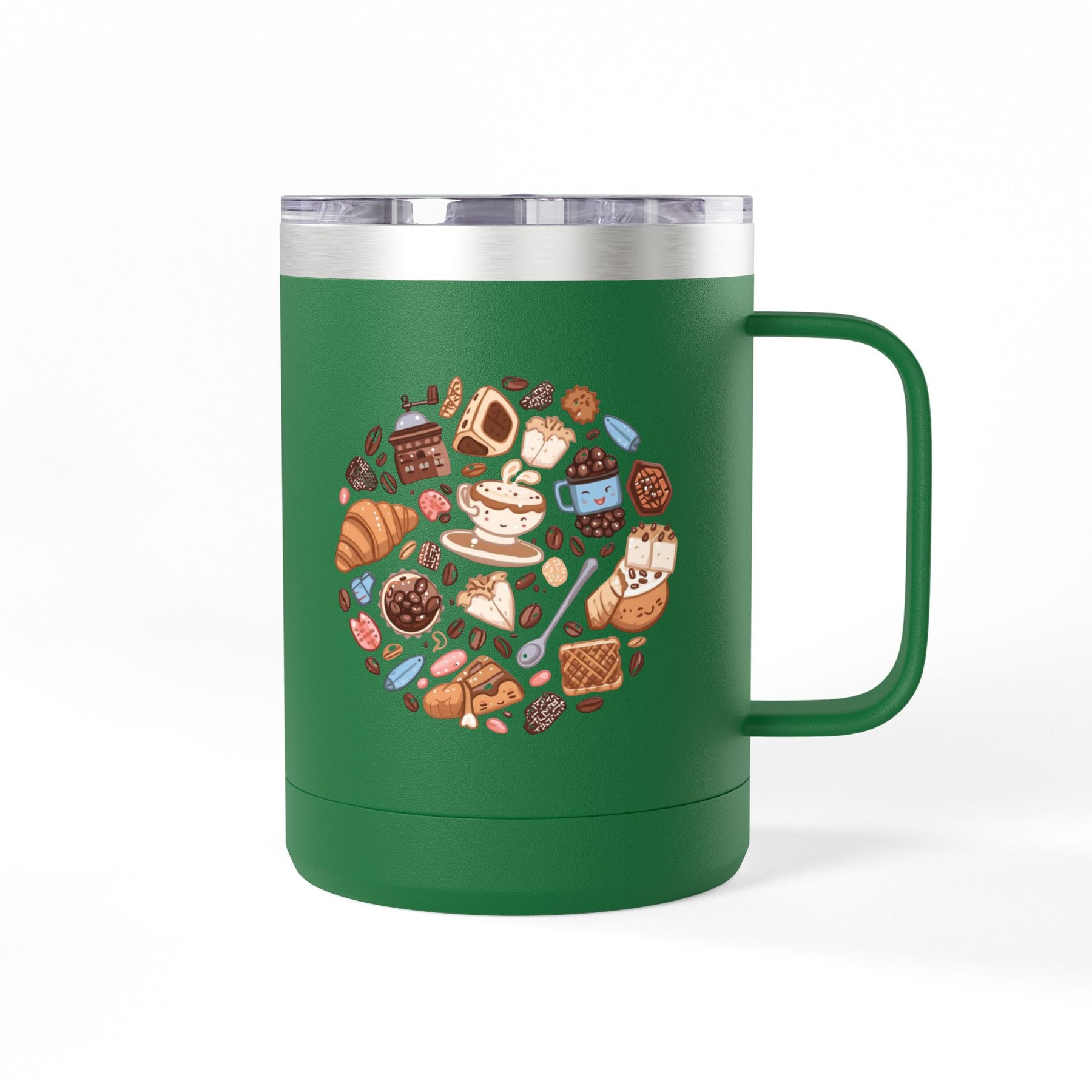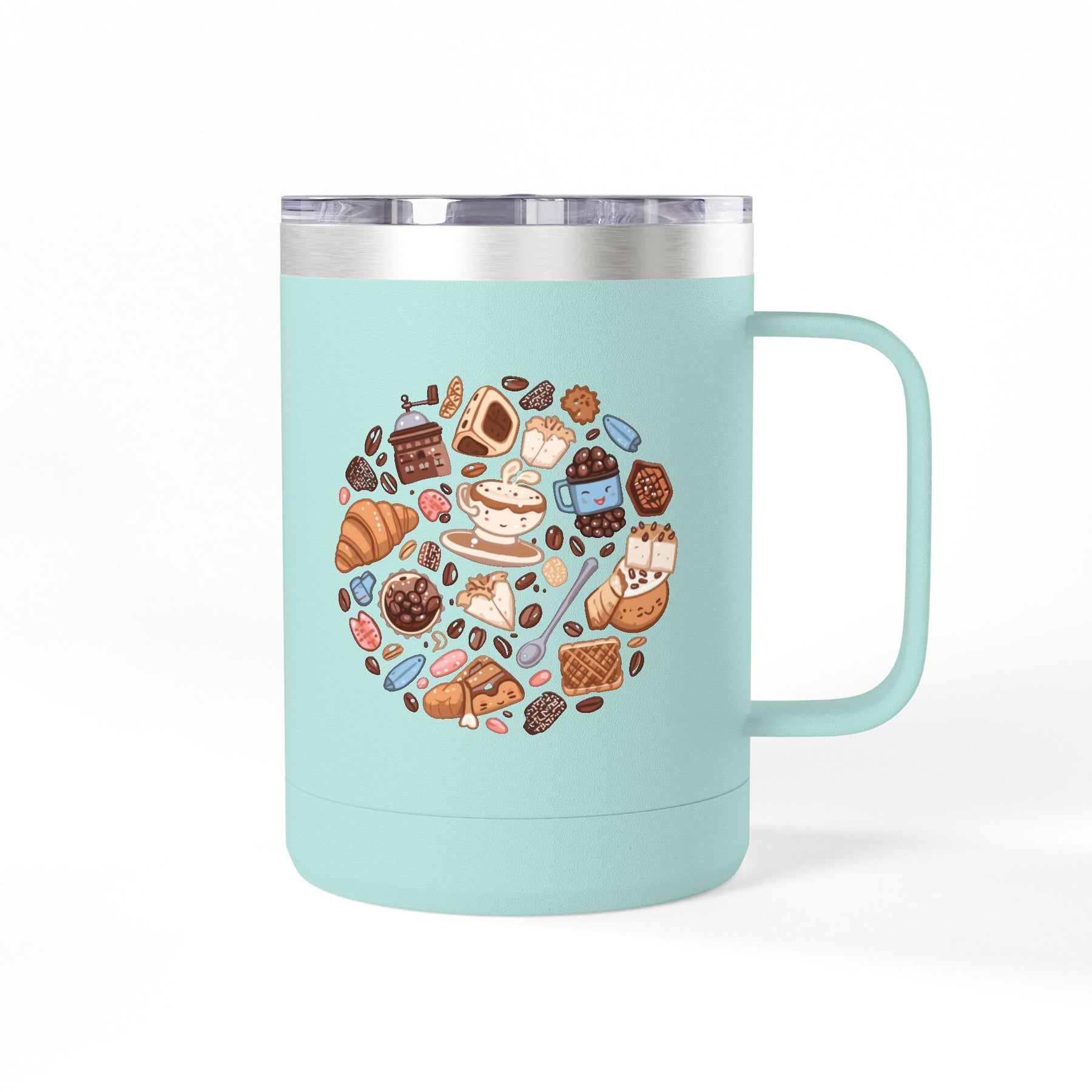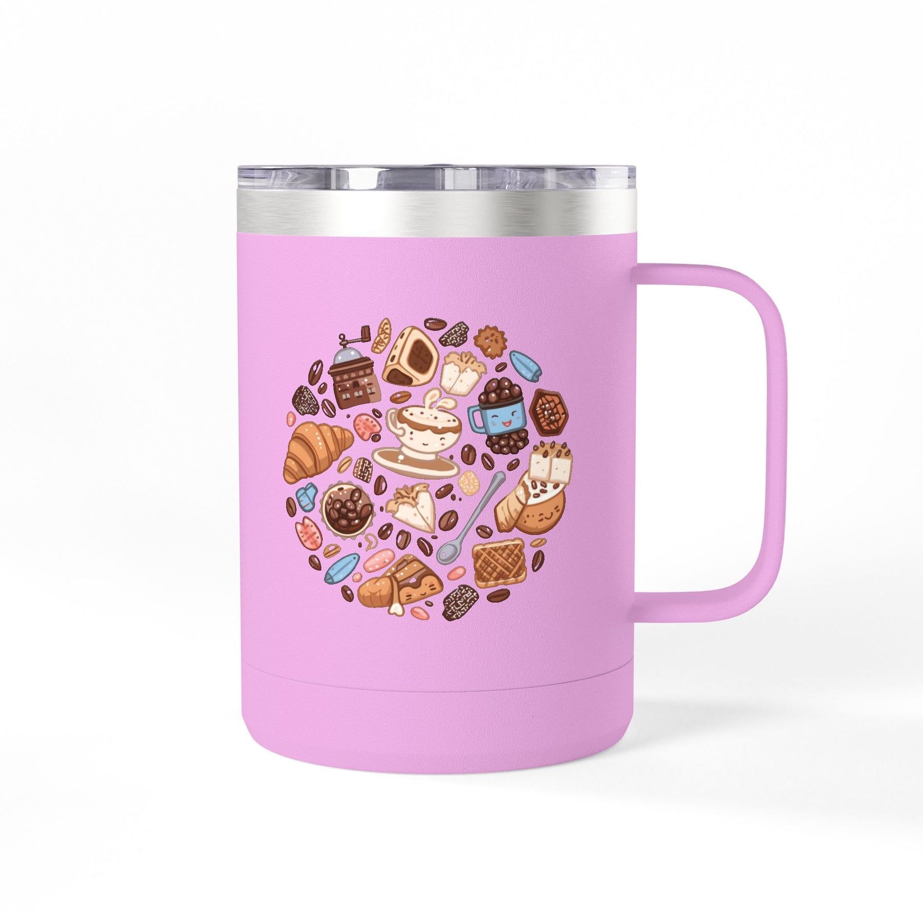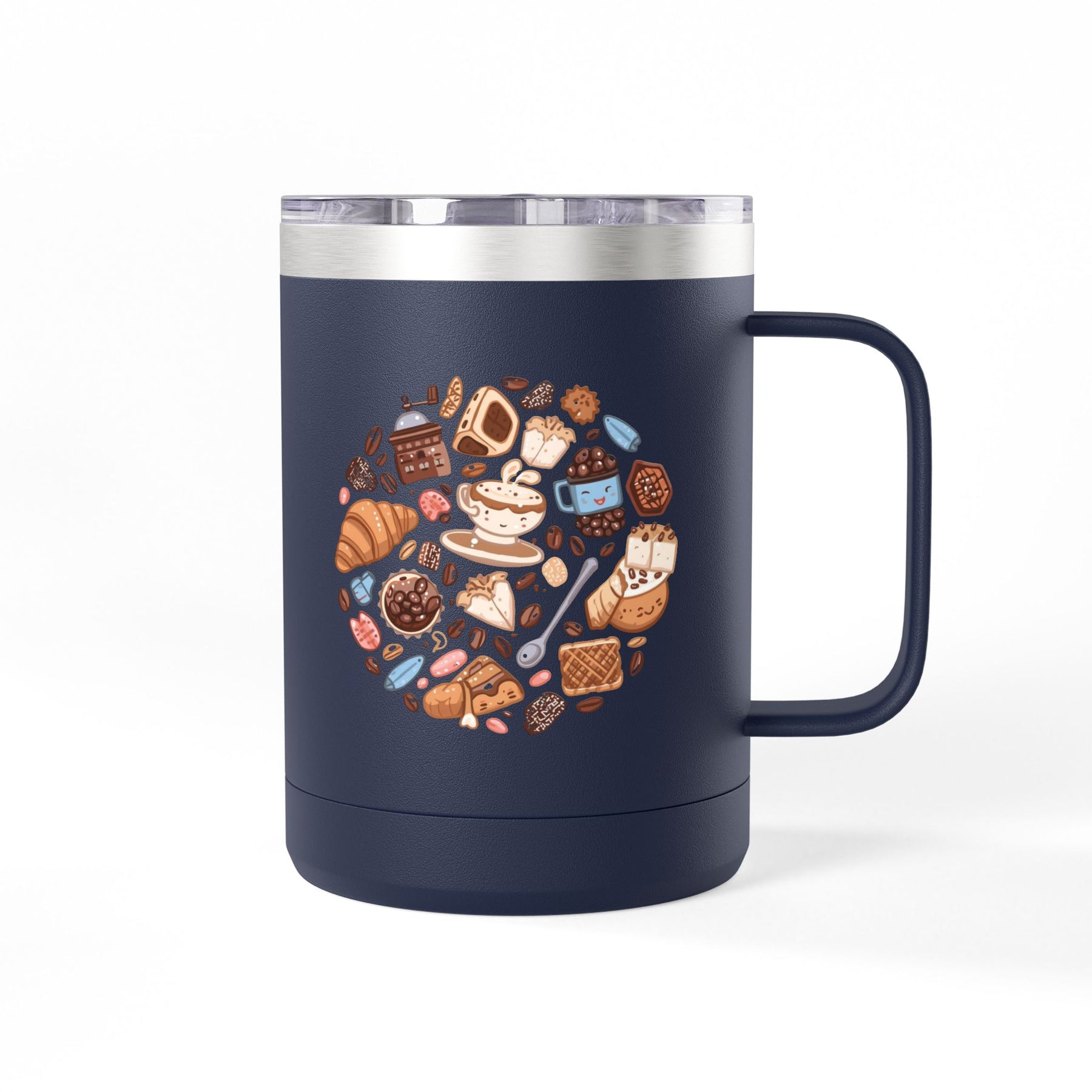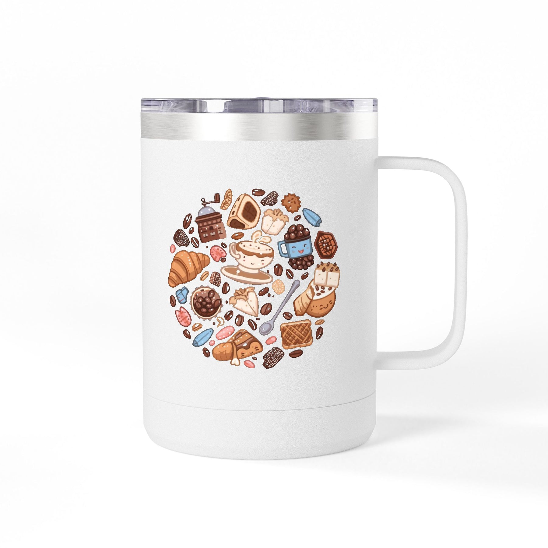 Warm 15oz Coffee Mug Tumbler – Whimsical Café Cartoon, Insulated & Stylish