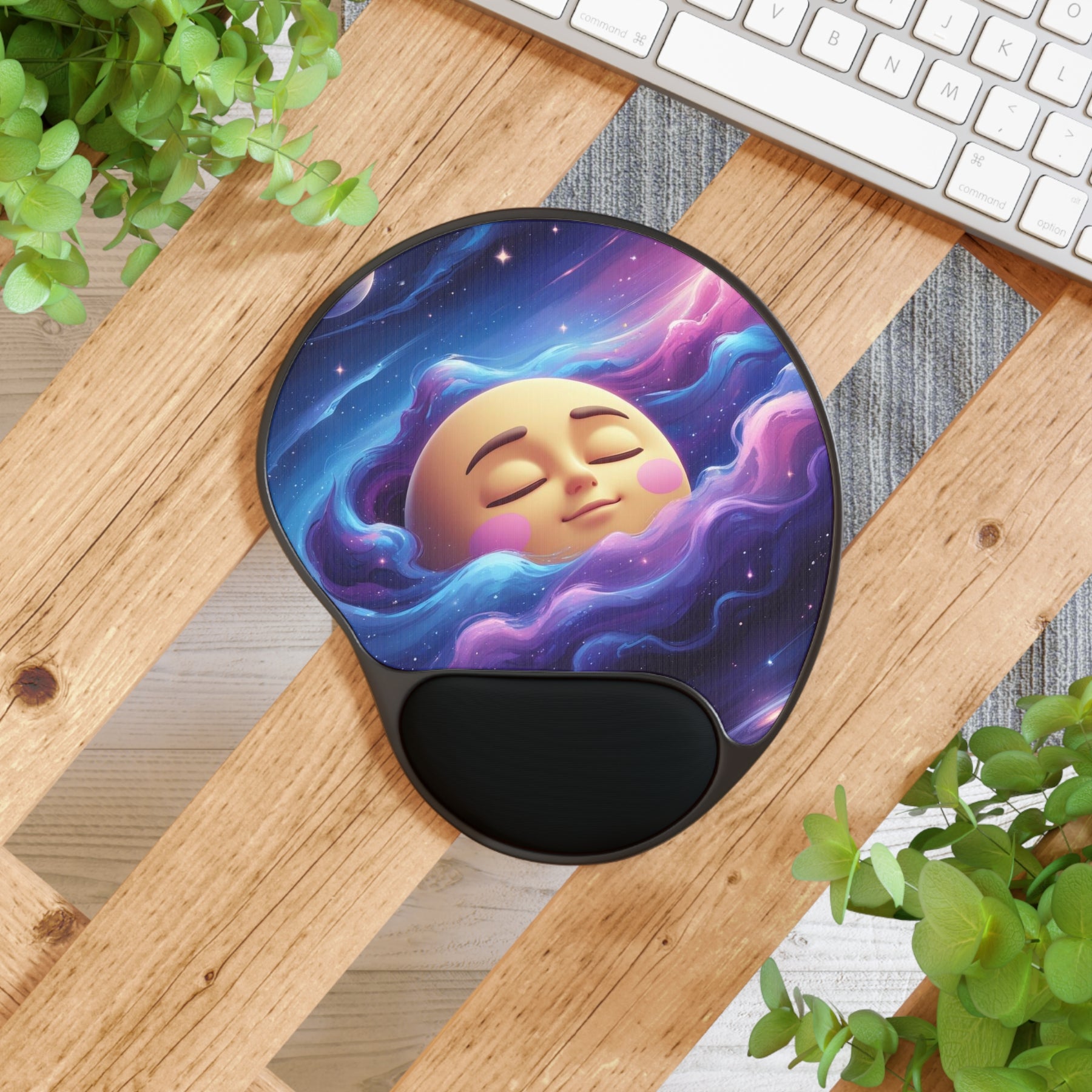 Ergonomic Galaxy Moon Mouse Pad with Wrist Rest – Cute Space Comfort