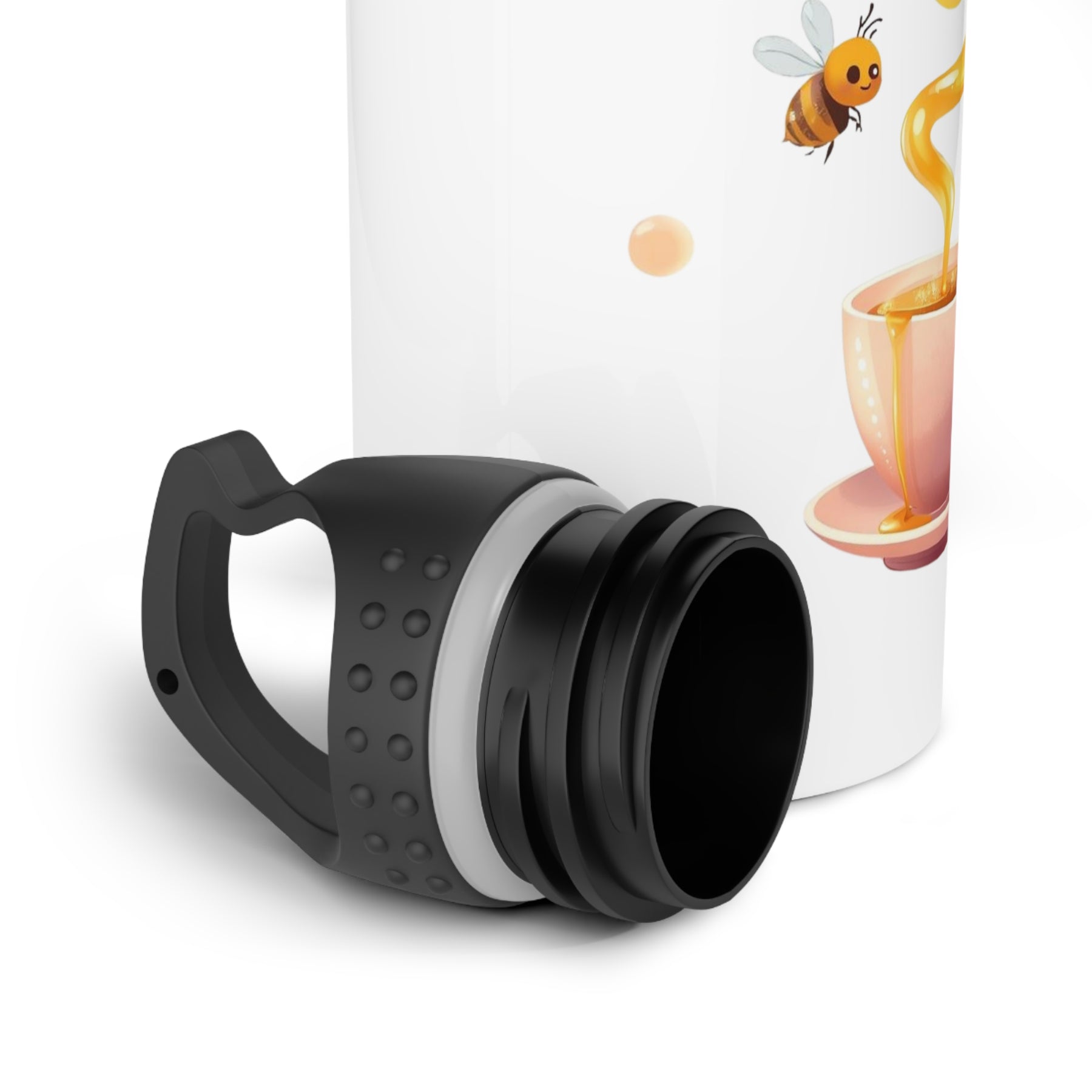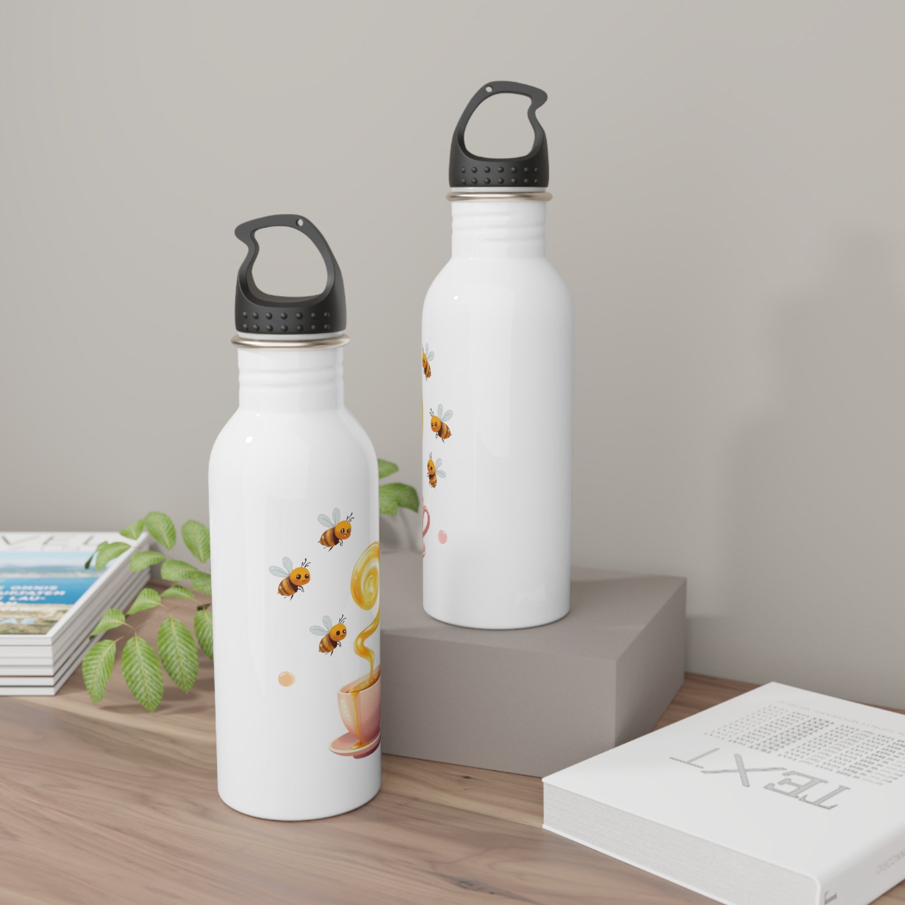 Stainless Steel Water Bottle - Cute Bees & Honey Pink Teacup | 20oz Insulated