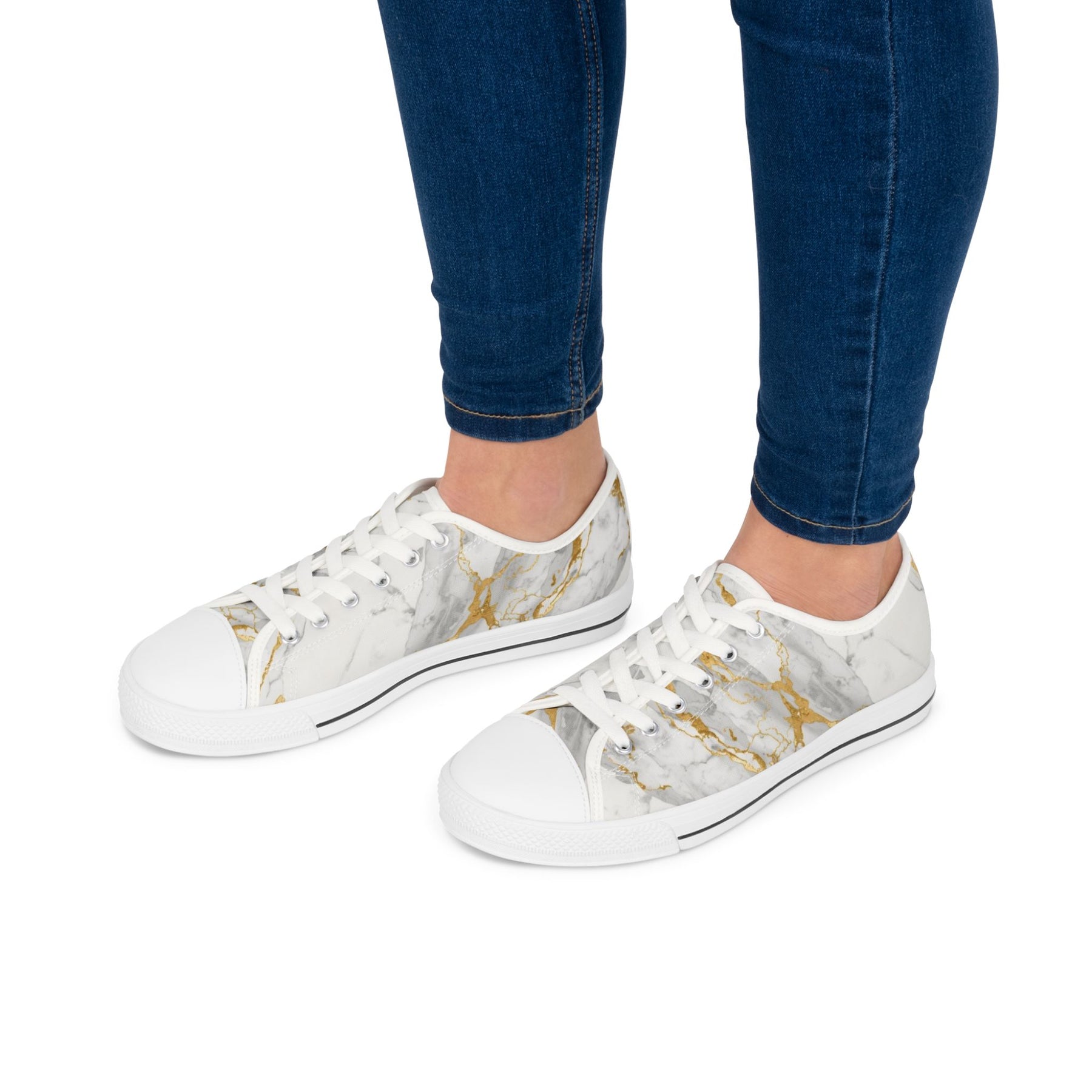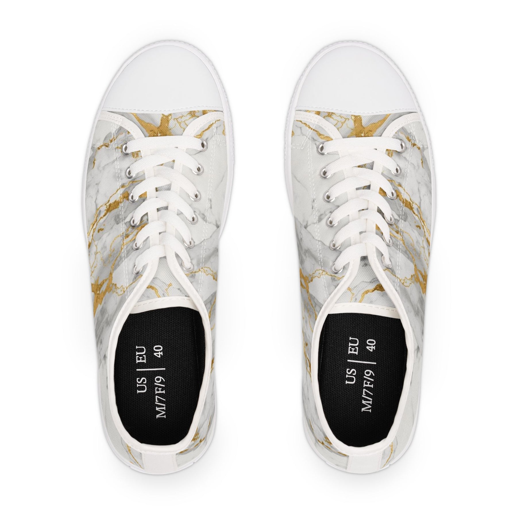 Women's Marble Low Top Sneakers – Custom Luxe Gold & Grey Comfort Shoes
