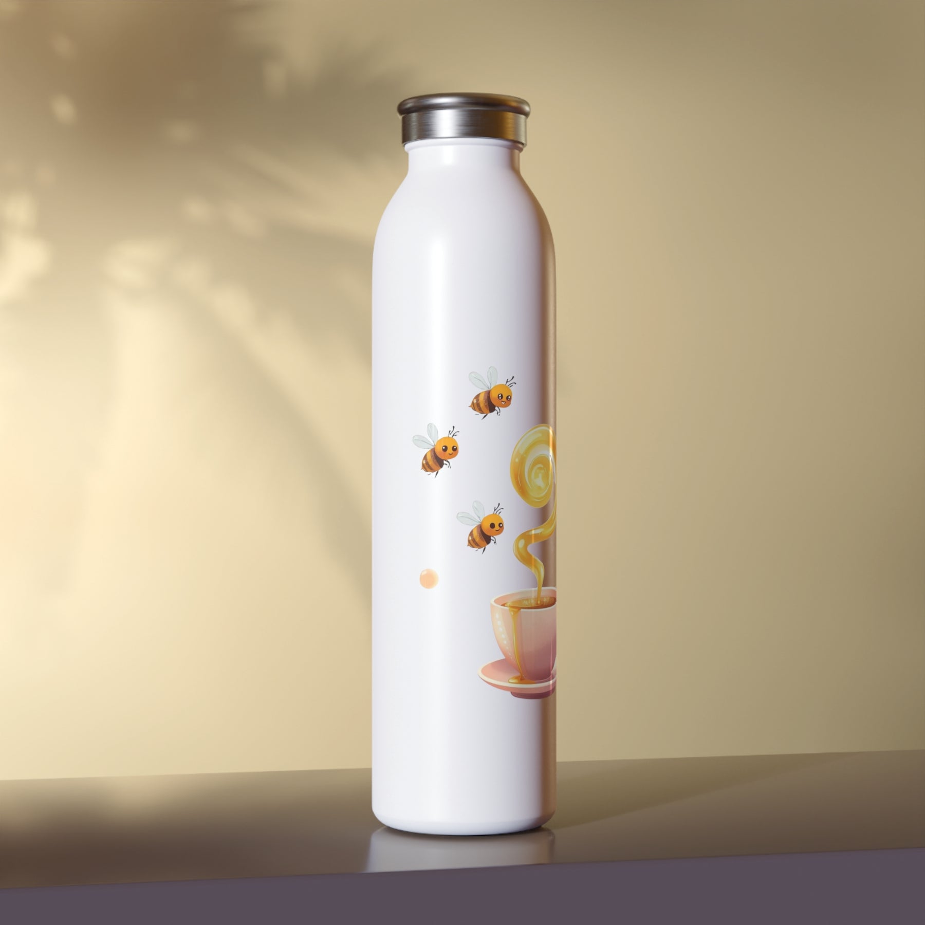 Slim Personalized Water Bottle – Cute Bees & Pink Teacup | 20oz Stylish, Eco-Friendly, Customizable Flask