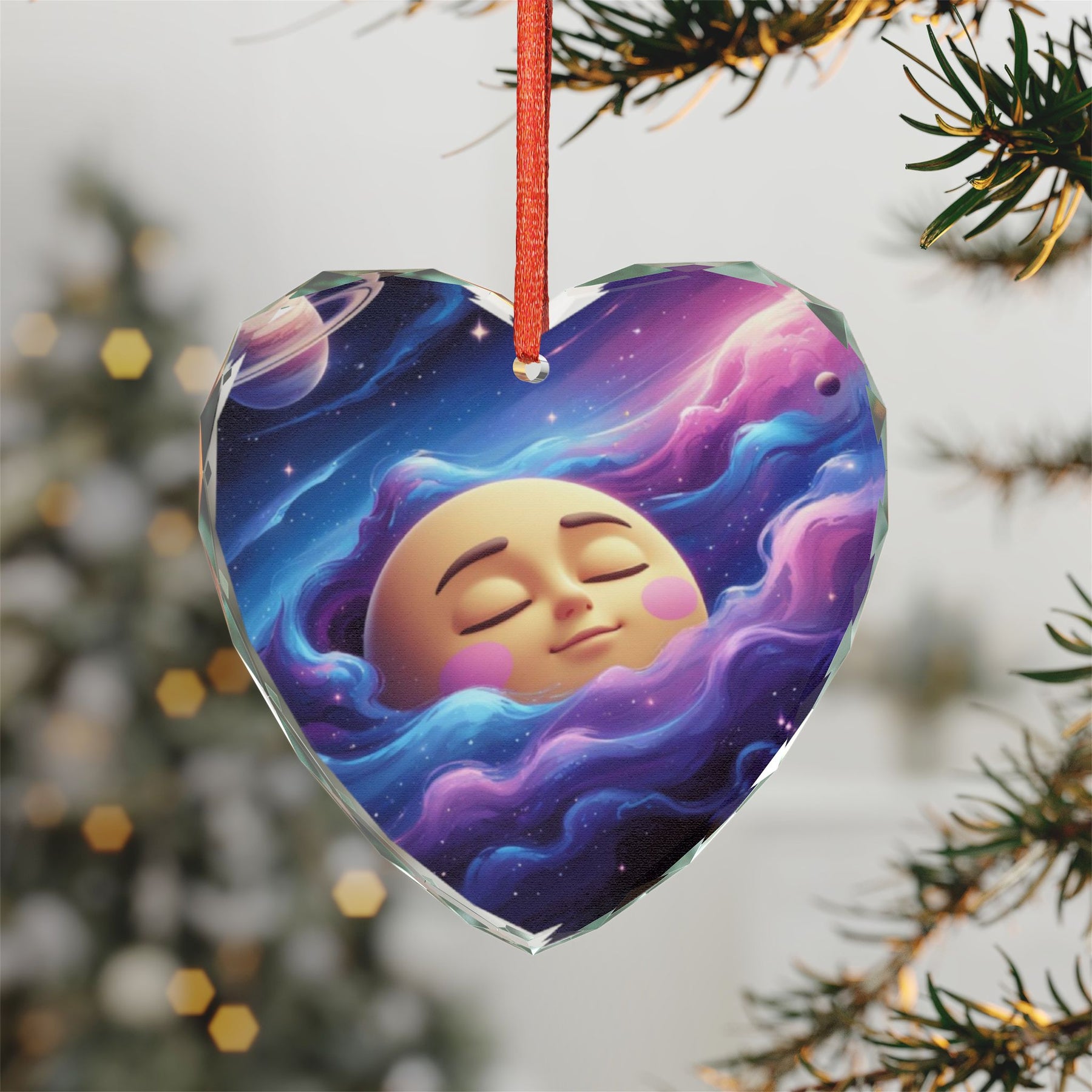 Each Crystal Glass Ornament comes ready to display with a stylish red ribbon for effortless hanging straight out of the box. Choose from two elegant shapes—timeless round or romantic heart—to perfectly complement your style and decor. With a vivid one-sided print that remains beautifully visible from the back, this ornament offers charm from every angle, making it a standout feature wherever you place it.