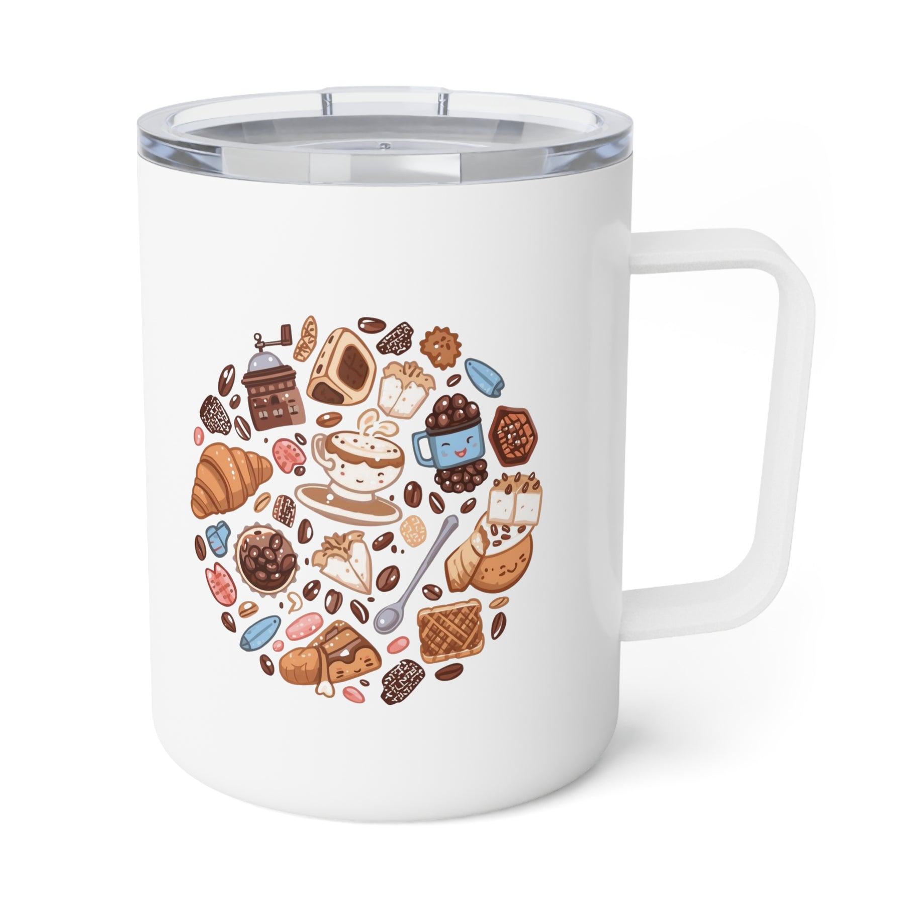 Whimsical Café 10oz Insulated Coffee Mug – Cartoon Sweets & Hot/Cold Travel Cup