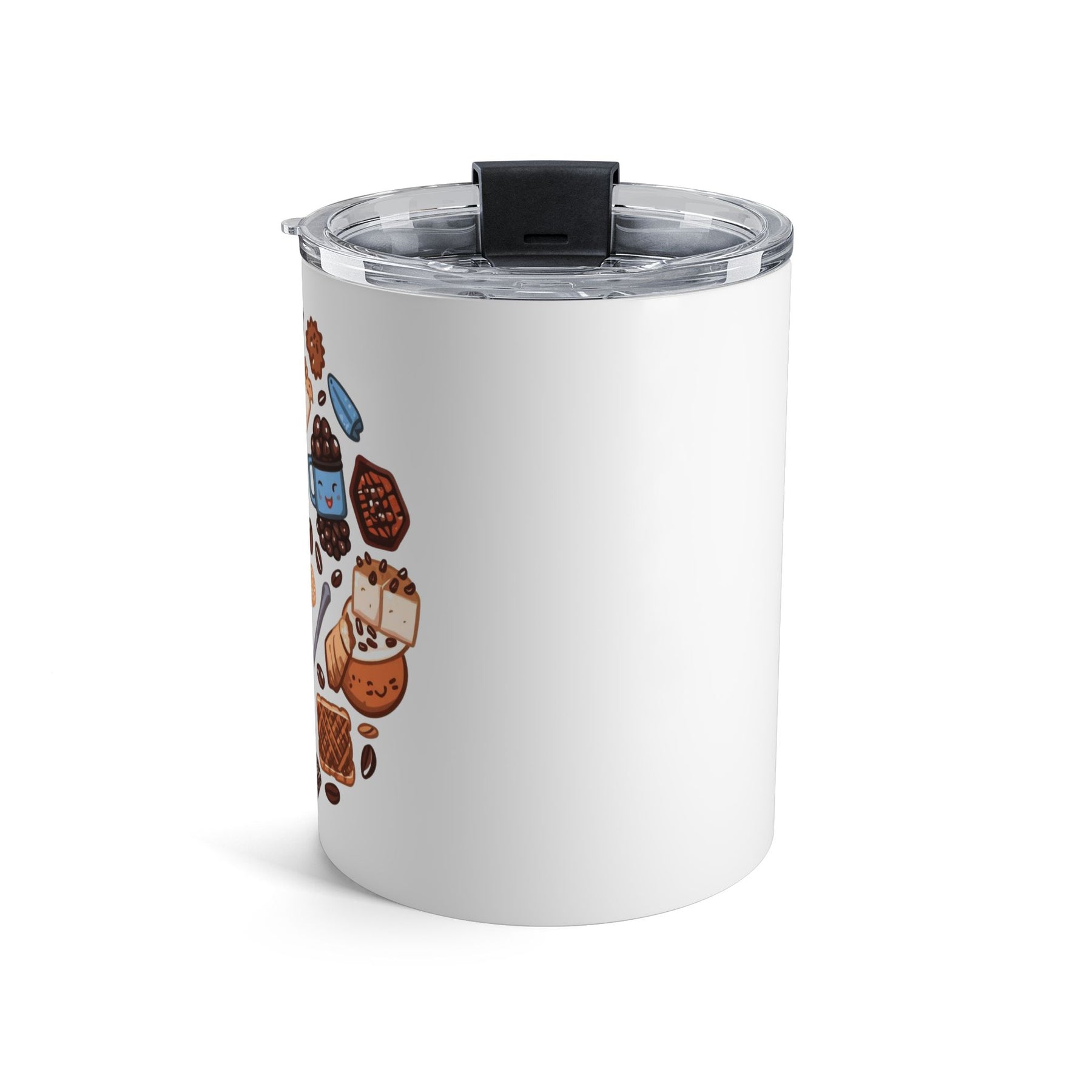 10oz Insulated Tumbler – Cute Coffee & Dessert Cartoon Bistro Design, Spill-Proof