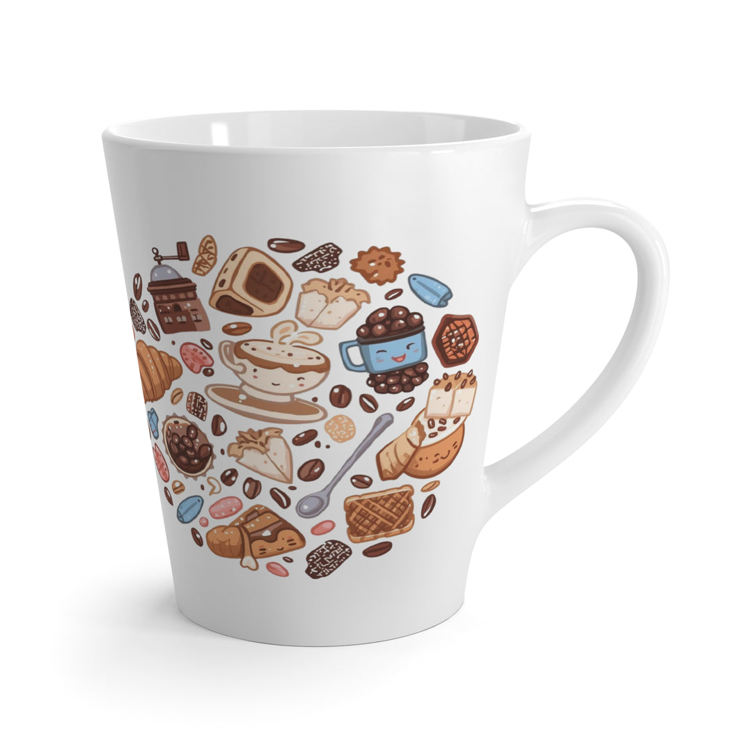 Custom Latte Mug – Cute Café Cartoon Design, 12oz, Dishwasher Safe Gift