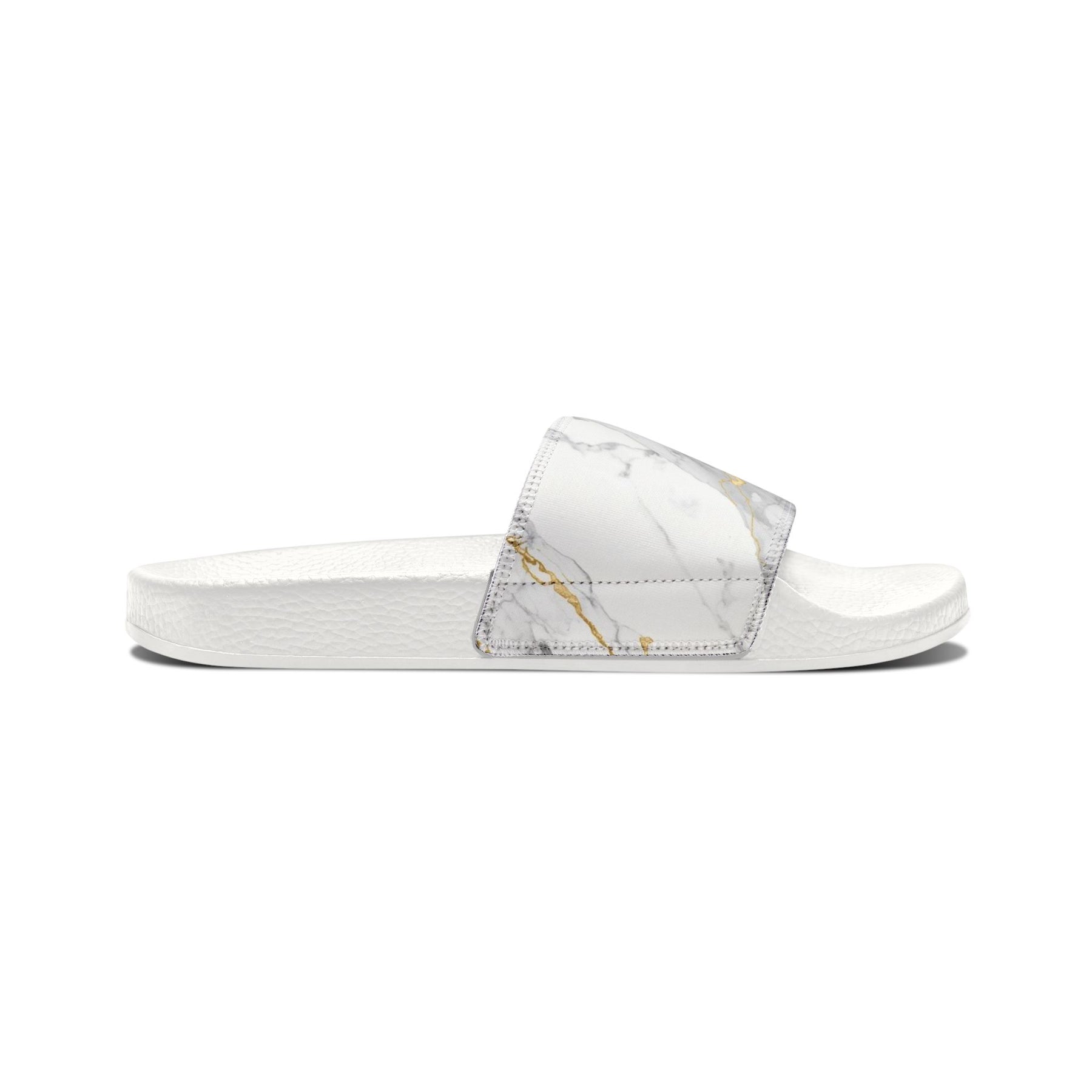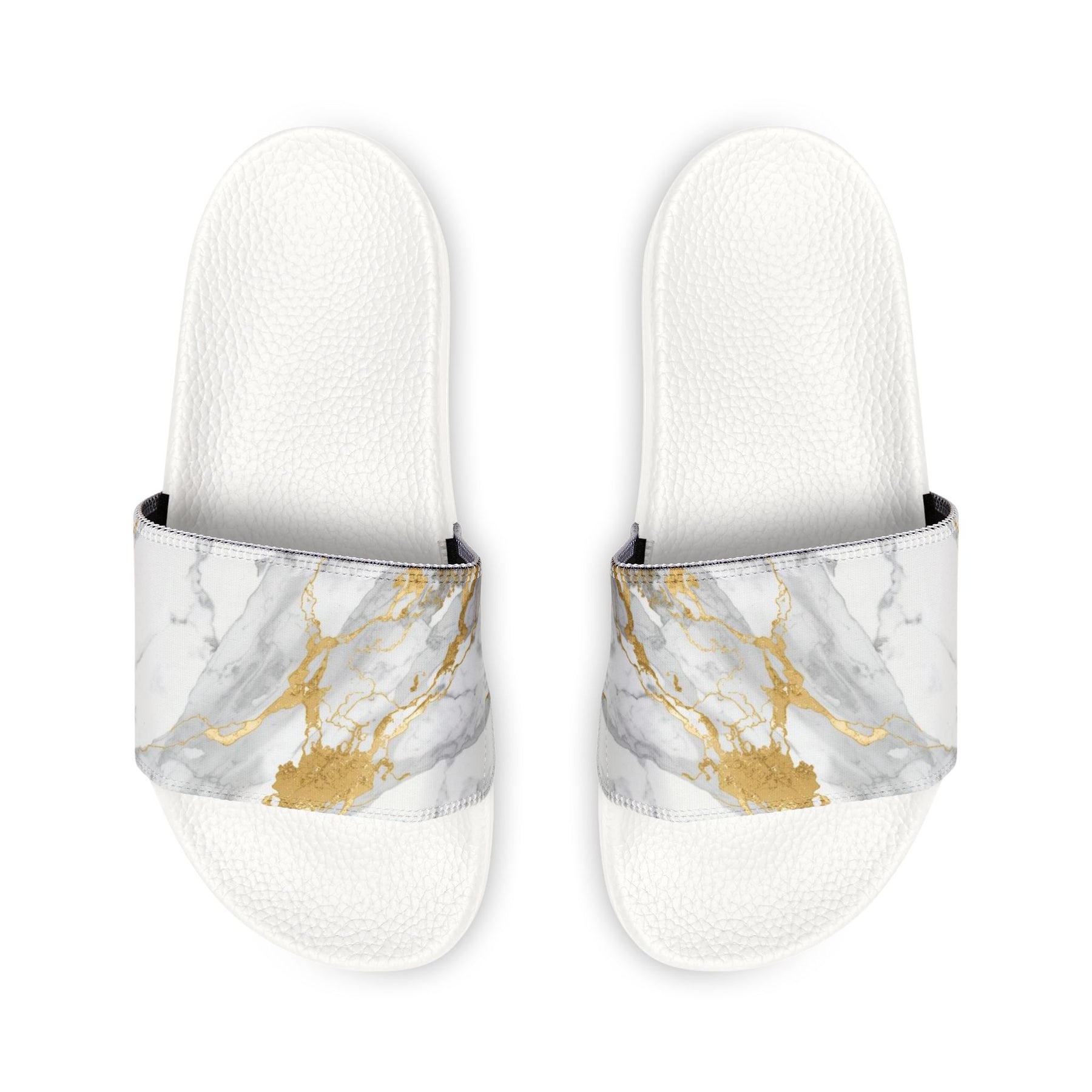 Youth Removable-Strap Sandals – Marble Gold Design, 2-in-1 Slides