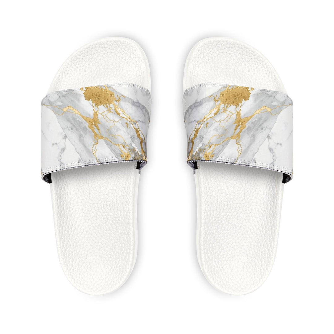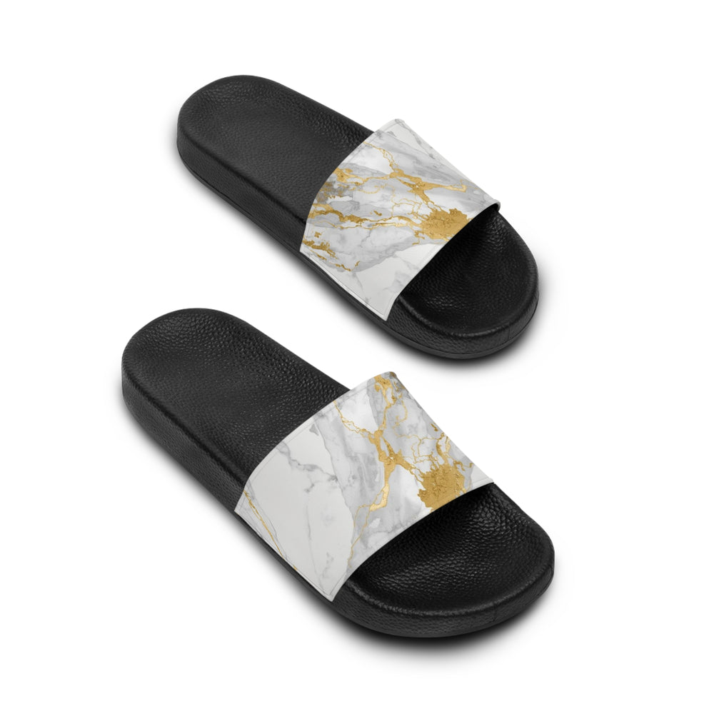 Chic Marble & Gold Women's Slide Sandals – Customizable, Ultra-Comfortable Slides