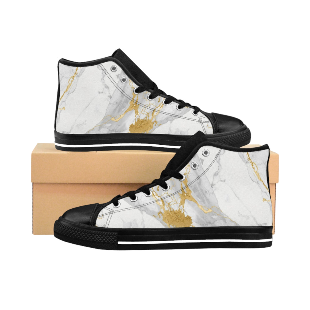 Women's Classic High-Top Sneakers – Marble Gold Glam, Comfy & Trendy